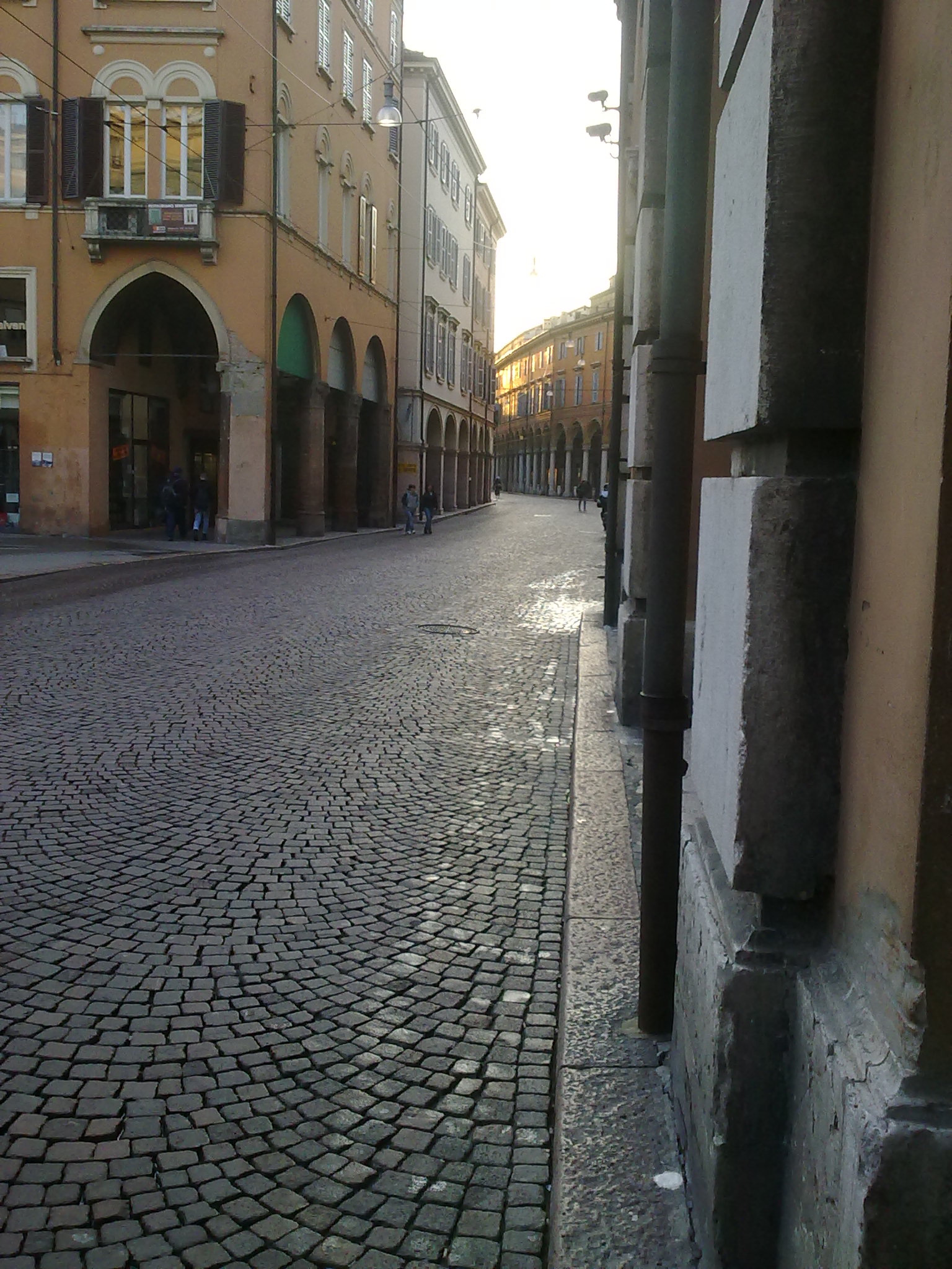 Mi metto in macchina e lascio il posto in riva al mondo dove vivo; attraverso le campagne che in questo febbraio cercano di togliersi di dosso nebbie e foschie, costeggio la ferrovia tenendo il muso della Croma blu puntato verso il sole che nasce …destiny is a rising sun…attraverso Campogallo, arrivo in città, parcheggio all’ex ippodromo e prima delle otto sono in centro a Modena.