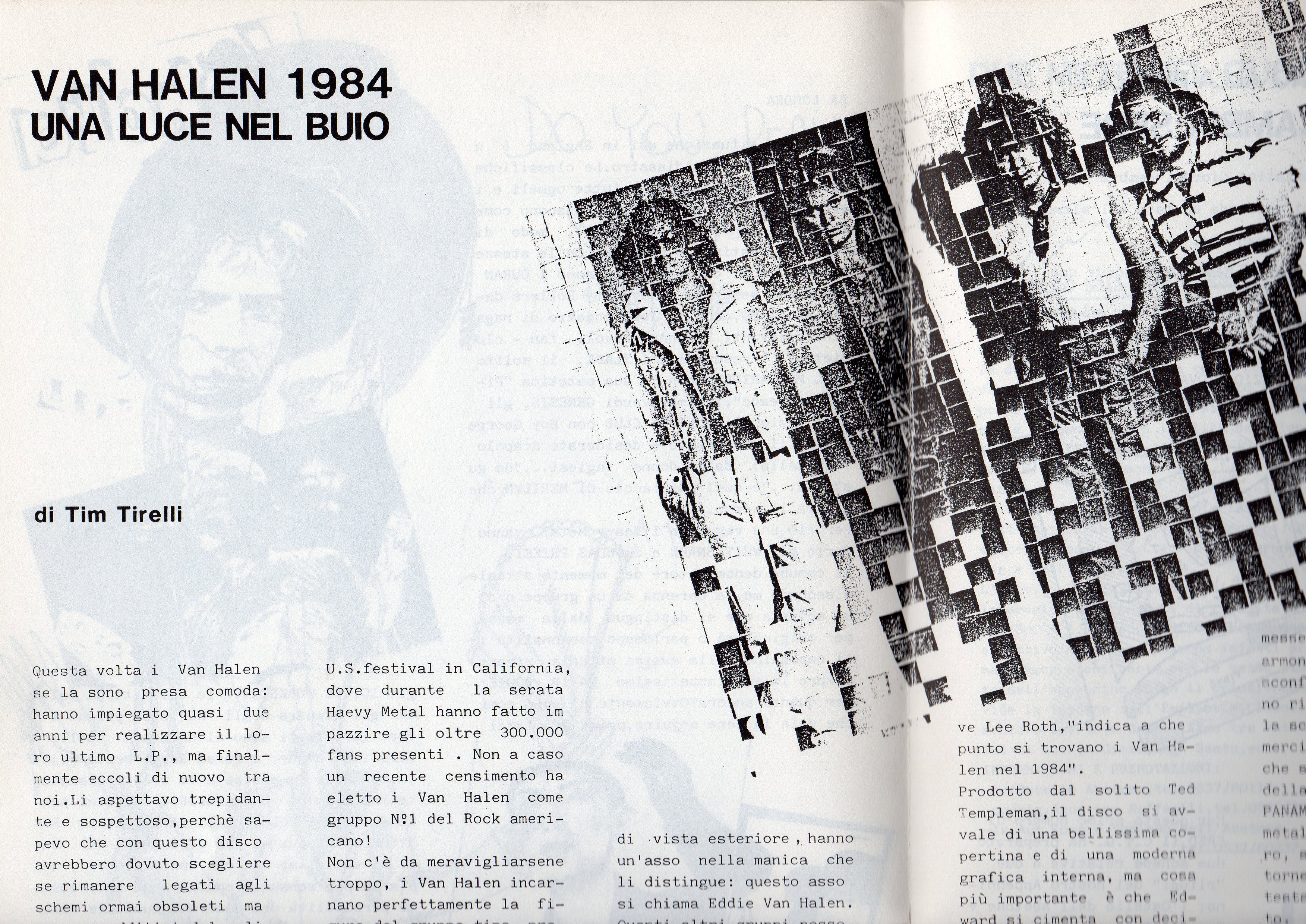 La sera arriva e mi porta in regalo uno di quei blues feroci che ti prendono la gola. Arriva dall’ altra stanza un brusio lontano… sky col posticipo. Non mi interessa, mi metto in camera, una lampada accesa e mi leggo l’articolo su 1984 dei Van Halen.