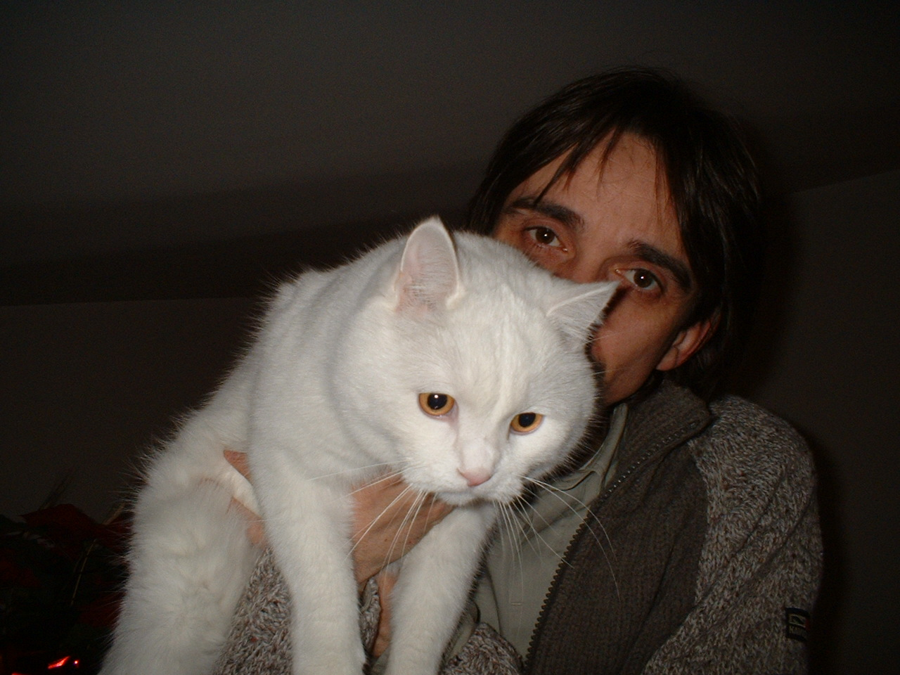Fidél, da batuffolo di pelo bianco si trasformò in un elegante e potente gatto bianco, dai lineamenti belli e fieri. Sguardo spesso incazzato, di solito poco propenso a confidenze con estranei, ogni tanto decideva di fidarsi e saliva sulle gambe degli amici che avevo a cena, in particolare di Jaypee e Lakérla.  Lasìmo lo chiamava con vezzeggiativi quali Shiubushu, ma lui – da buon gatto rivoluzionario – preferiva essere chiamato Fidèl, al massimo Fiùfus.