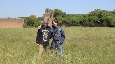 Siam lì sull’Appia Antica, due passi e siamo a Villa Massenzio. Storia, antiche mura, sole, l’aria tiepida di maggio, prati dall’erba alta … mi vien voglia di farmi una foto Knebworth-style: