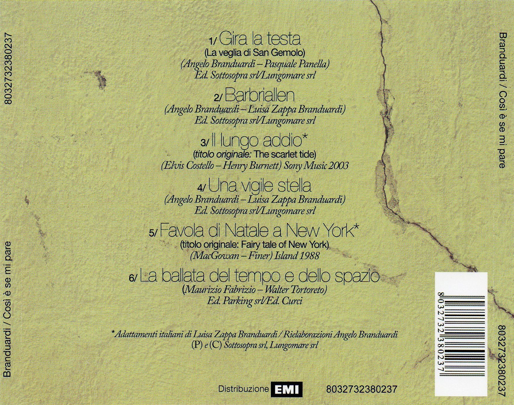 ANGELO BRANDUARDI – Così E’ Se Mi Pare (Emi 2011) – JJJJ