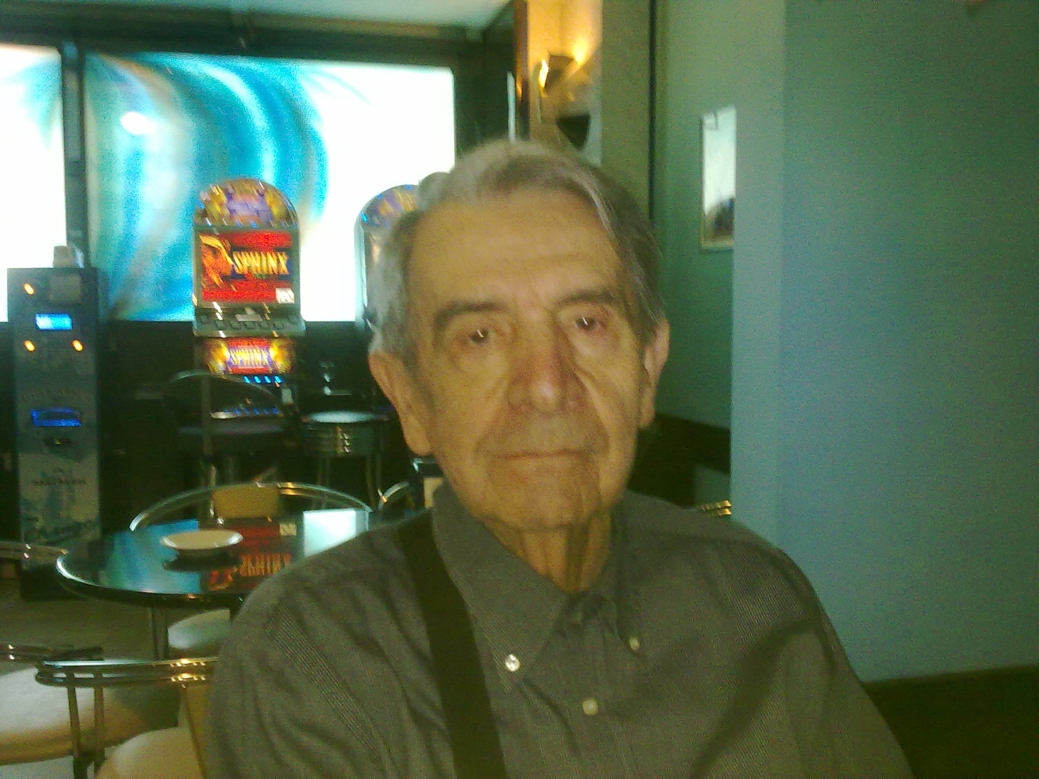 Porto i caffè al tavolo e insieme a Brian inizio a far colazione. John Miles si sposta nell’angolo maledetto del bar, l’angolo delle macchinette. Cambia una banconota da venti euro in gettoni e inizia a giocare alla macchinetta Princes Of The Amazon. Sposto lo sguardo sulla macchinetta all’estrema sinistra, quella che si chiama Treasures Of The Pyramid, ci sono tre meridionali, uno di questi gioca con fare scazzato senza neppure mettersi a sedere sullo sgabello. Gli altri si danno scoppole sulla coppa (la parte posteriore del collo), parlano un idioma che non riesco a decifrare ma mi paiono campani. Tre minuti e se vanno via. Non ho ancora terminato il mio krafen che John Miles scambia un’altra banconota da 20 euro. Lo guardo giocare con fare assente, l’indifferenza del suo fare mi colpisce, vorrei andare a parlargli e capire che cosa scatena questo suo impulso … 40 euro in 5 minuti. Invece mi alzo, mi preparo ad uscire e gli canto una strofetta di SLOW DOWN, di John Miles appunto:
