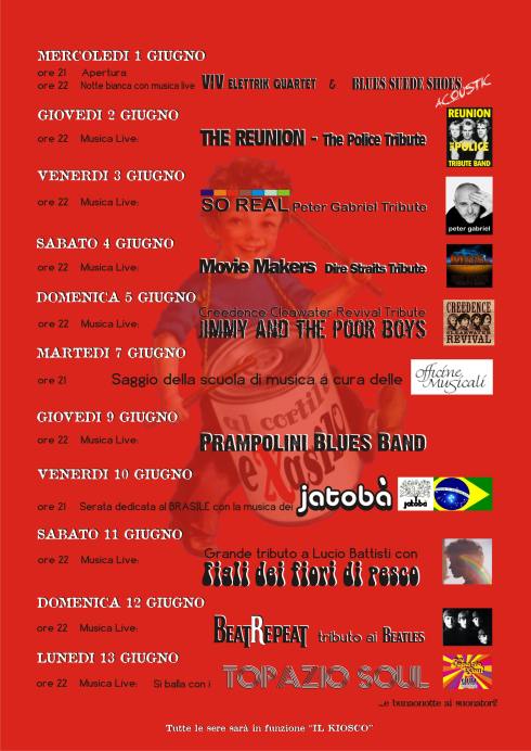 Pubblico volentieri il programma della kermesse musicale organizzata da Roberto Molinari (batterista extraordinarie) presso il CORTILE EX ASILO di Ravarino (Mo)