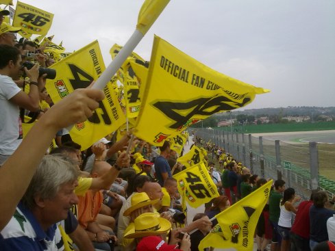 Persone legate dall’amore per le moto, per le gare, e per Valentino Rossi, che in 15 anni ha saputo creare attorno a sé un movimento tale di persone (oltre che di affari) che quando smetterà non oso pensare a come si ridurranno le corse in moto.