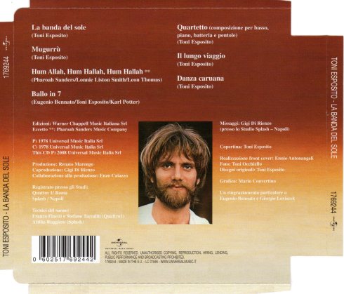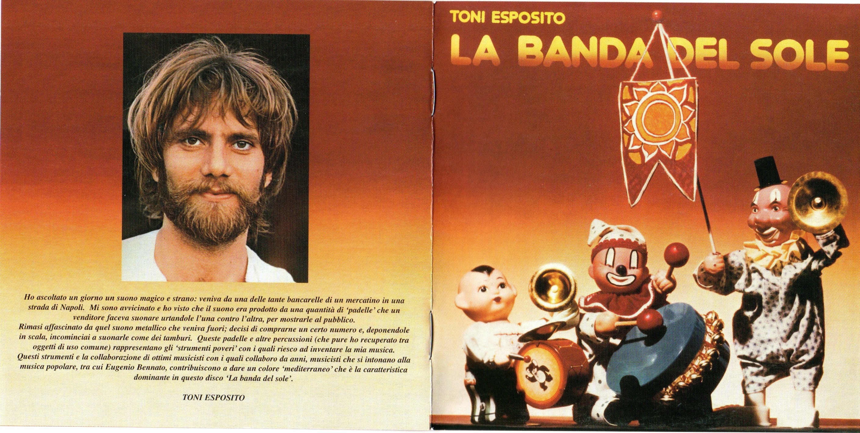 Un po’ di sere fa mi torna in mente il motivetto LA BANDA DEL SOLE di Tony Esposito…roba che ascoltavo su PUNTO RADIO di Zocca 33 anni fa. Mi metto a computer, scopro il CD rimasterizzato nel 2010 su Ebay e me lo prendo. Musica strumentale mediterranea con una spruzzata di jazz-rock fine ani settanta fatta con percussioni di tutti i tipi, pentole incluse. Negli anni settanta le major pubblicavano anche dischi come questi. Come sembra tutto lontano.