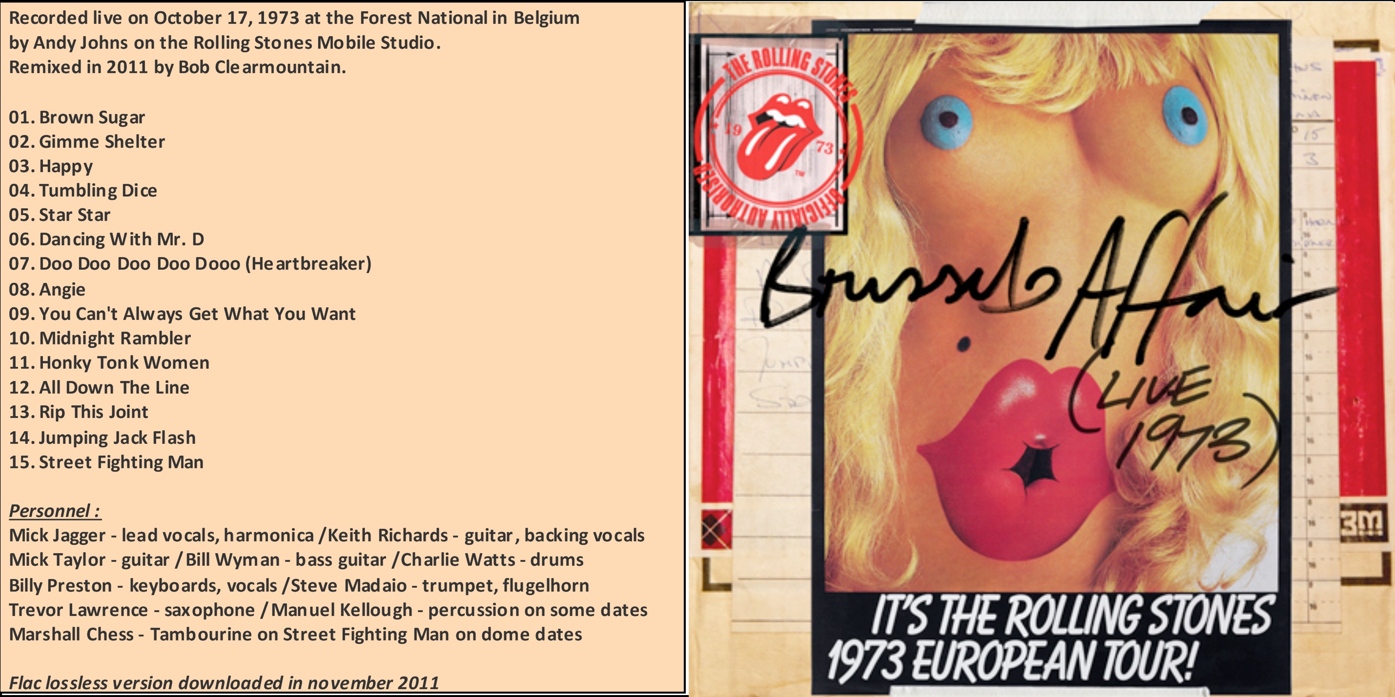 Finalmente l’uscita ufficiale di BRUSSELS 1973, disponibile fino ad oggi in decine di versioni bootleg ed ora anche col download ufficiale (sia mp3 che flac lossless) dal sito dei Rolling http://www.stonesarchive.com/ .