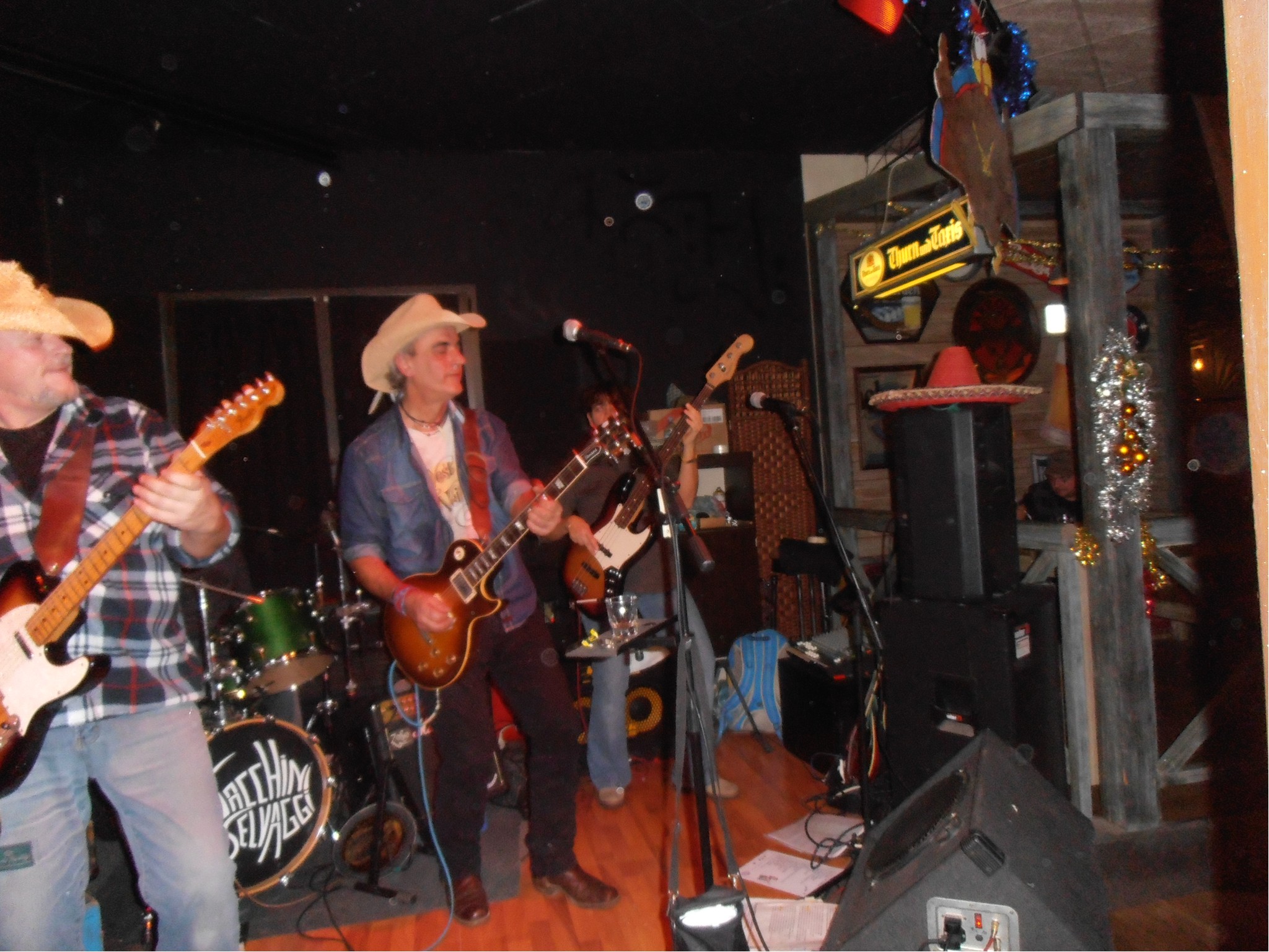 Partono i Tacchini e il loro “country sudista” prende quota. Non esattamente my cup of tea, ma i ragazzi (e ragazze vista che Lasàurit ci suona il basso), ci sanno fare e lo show risulta come spesso capita energico e convincente. Suto e Mauro alle chitarre e alle voci, Lasàurit al basso e Daniele alla batteria. Mi godo l’elegante picchiare di quest’ultimo, gli assoli e il canto di Suto e Mauro e soprattutto i puntuali, perfetti e riconoscibilissimi giri di basso della mia bassista preferita.