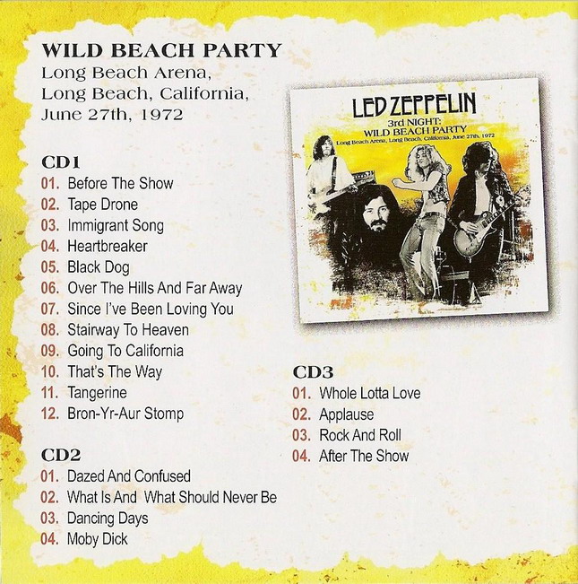 - LED ZEPPELIN “3rd Night Wild Beach Party – Long Beach 27 giugno 1972” (bootleg audience / Godfather 2011)