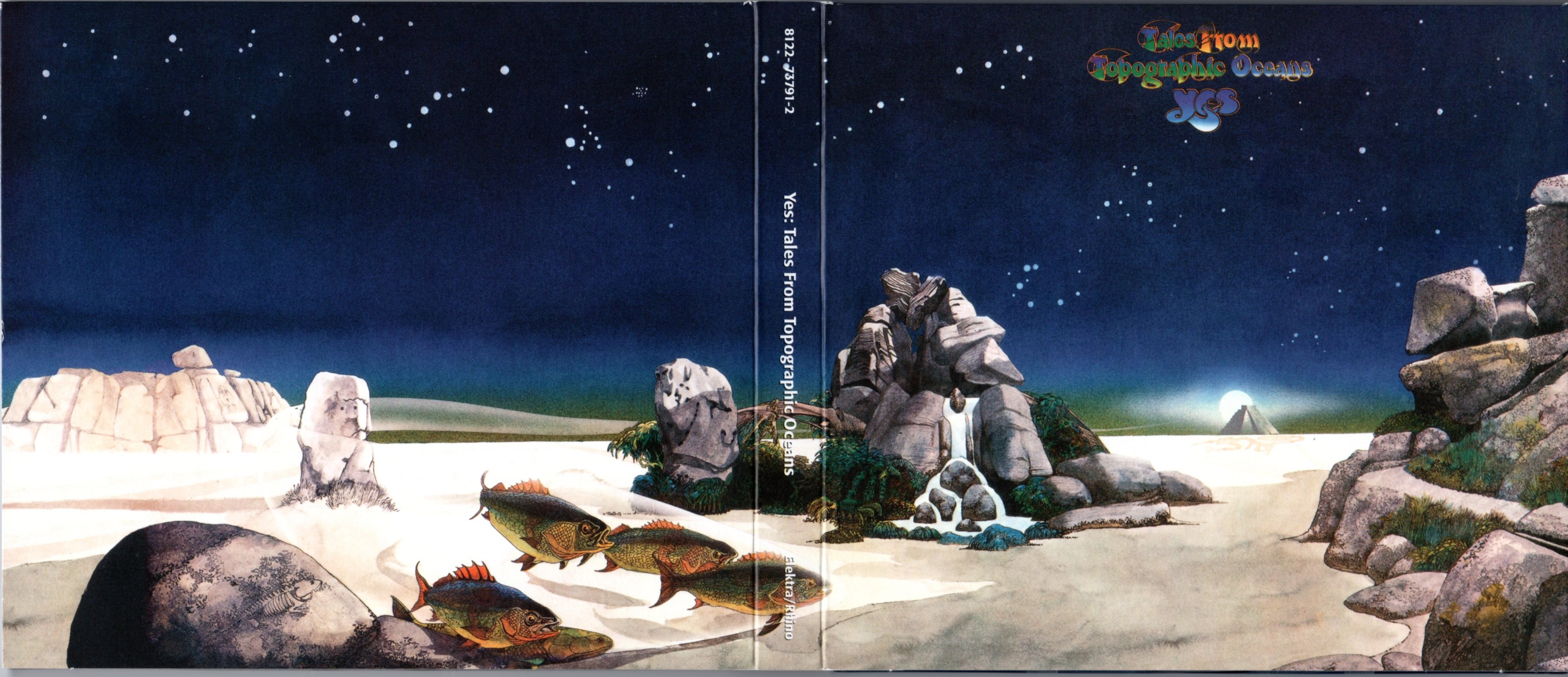 Oppure uno si mette in macchina di prima mattina per andare al lavoro se è un venerdì come mille altri e infila nel lettore TALES FROM TOPOGRAPHIC OCEANS degli YES. Doppio album con solo 4 lunghi pezzi che uscì gennaio del 1974… la versione che uno possiede è naturalmente quella digipack rimasterizzata con un paio di bonus track. Sollecitata da tanta quantità di bella musica la mente inizia a lasciarsi trasportare da pensieri che in un primo momento toccano le tematiche essenziali della propria sopravvivenza (“ma chi cazzo sarà il prossimo allenatore dell’Inter?“), ma che poi decollano inabissandosi nello spazio profondo.