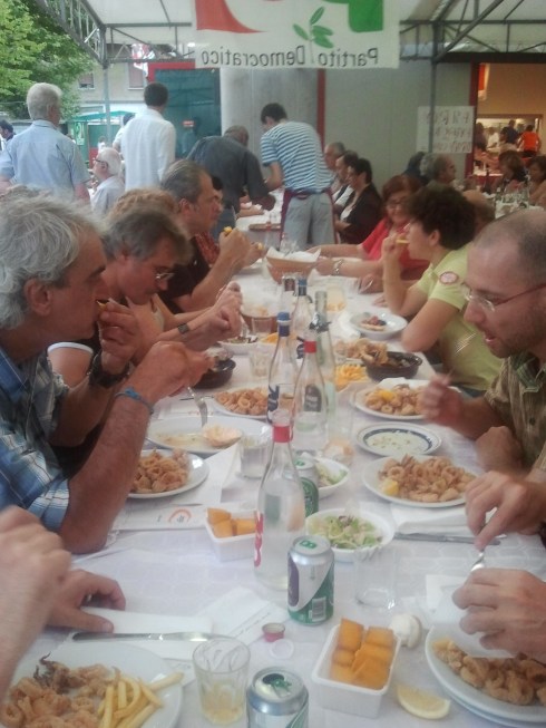 La cena è a base di pesce, qui alla festa ci sanno fare come ci sappiamo fare io e Riff che sapientemente ordiniamo la zuppetta di pesce, una vera delizia. Fritto misto, vinello bianco e quell’atmosfera da Emilia vera, sanguigna, ruspante…quella dei tempi andati…