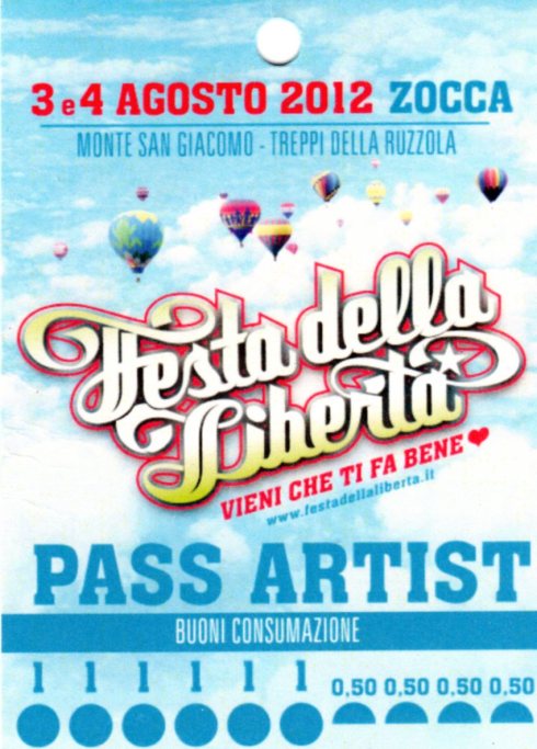 Dispepsia…mi sembra che non ci sia, buon segno, ieri sera ho mangiato riso in bianco per essere sicuro di star bene. Vedremo in seguito che mi sbaglio anche ad interpretare il linguaggio del mio stomaco. Sabato 4/08/2012 …33 anni esatti esatti dopo Knebworth, siamo di nuovo alla Festa della Libertà di Monte San Giacomo di Zocca, la Woodstock nostrana: 4 palchi e un sacco di gente.