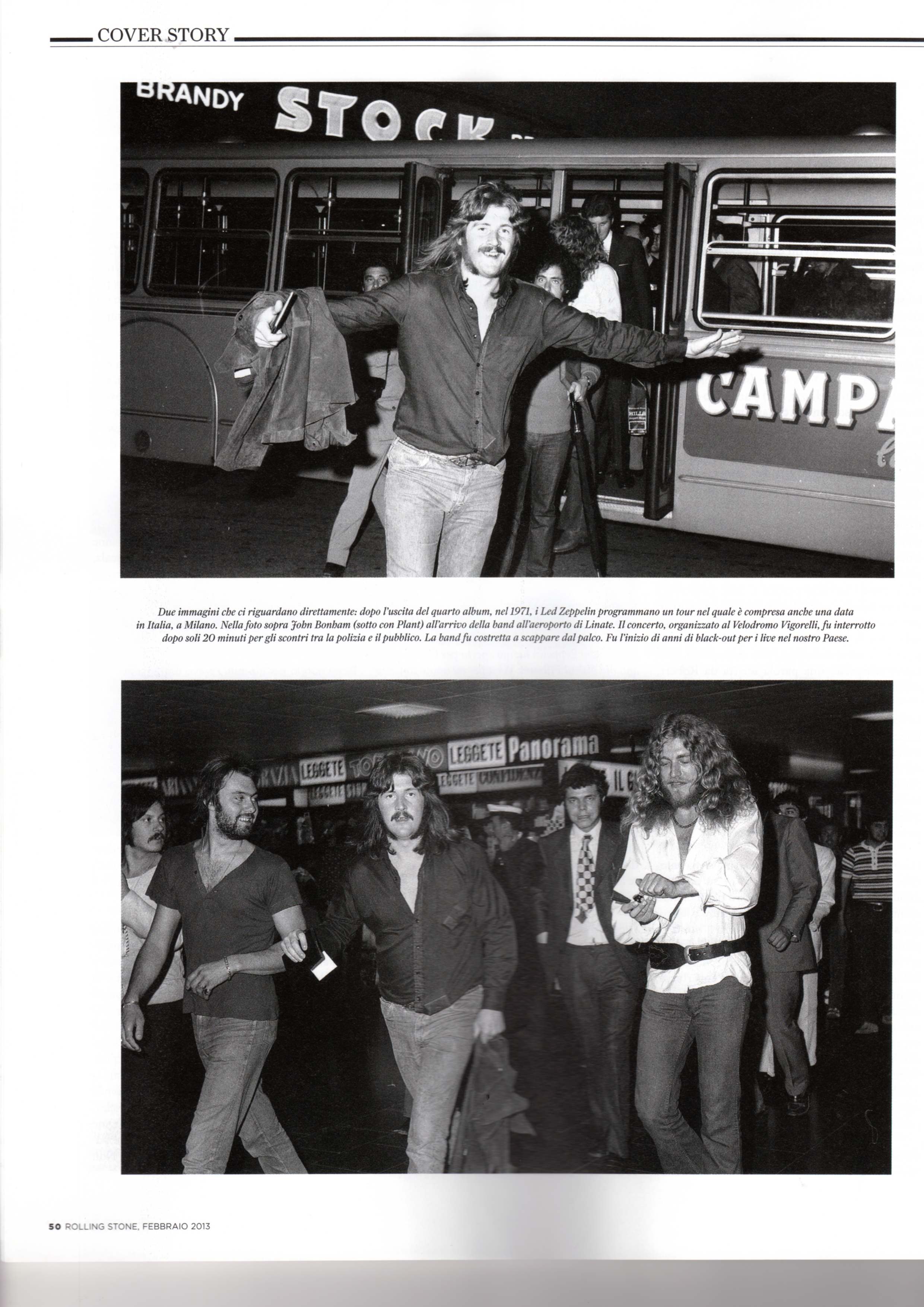 Lo sapete, RS non mi è mai piaciuto, sia quello americano che quello italiano, quando posso ne parlo male, ma di Riff mi fido e così ho comprato l’ultimo numero. Incredibile: all’interno due foto dei LZ (Bonham e Plant e Bonham) che non avevo mai visto, due scatti che ritraggono i due black country men all’arrivo a Linate nel luglio del 1971.