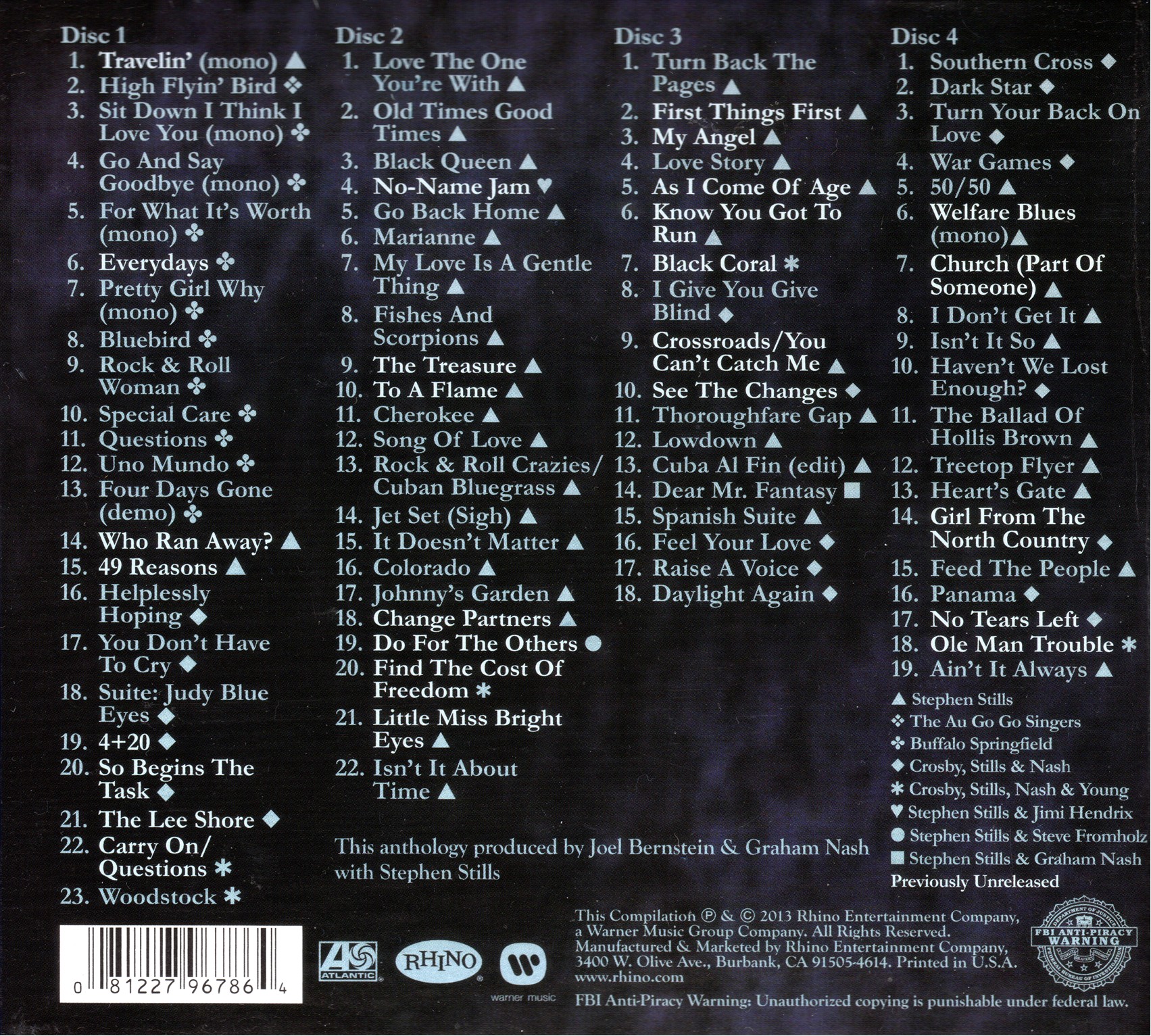 Inqualificabili le assenze della versione lunga di Bluebird dei Buffalo Springfield (ma tutto ciò che in qualche modo riguarda Neil Young è sistematicamente bloccato dai legali del canadese), di brani live degli eccellenti Manassas e di altre tracce dell’ abortita reunion CSN&Y del ’74 (probabilmente Neil ha inchiodato tutto in vista dei nuovi volumi dei suoi Archives).