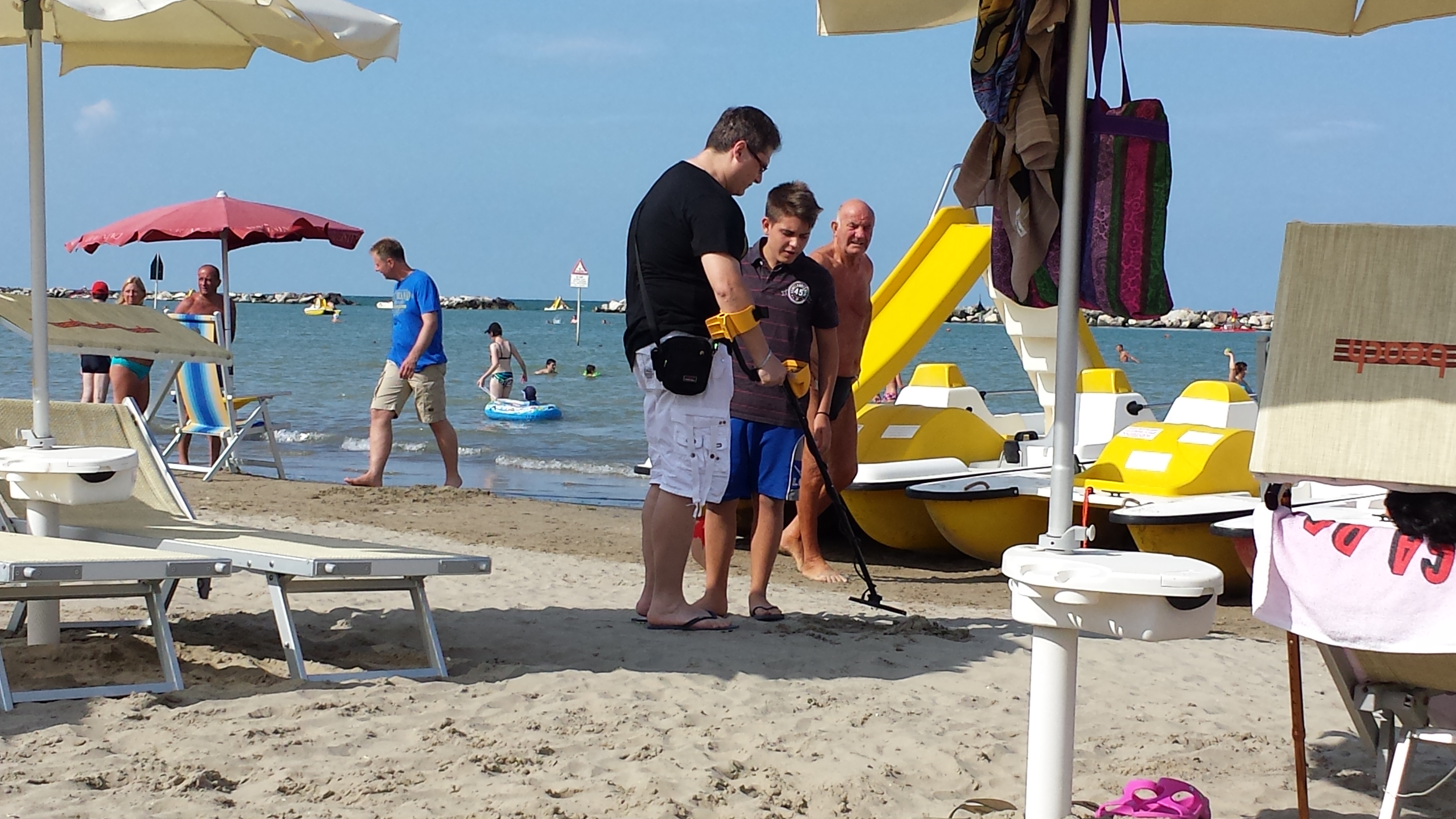 Un paio di curiosità: due nessi che girano in spiaggia col metal detector in cerca di chissà quali tesori nascosti e un negozio di abbigliamento sul Porto Canale dal nome particolare:
