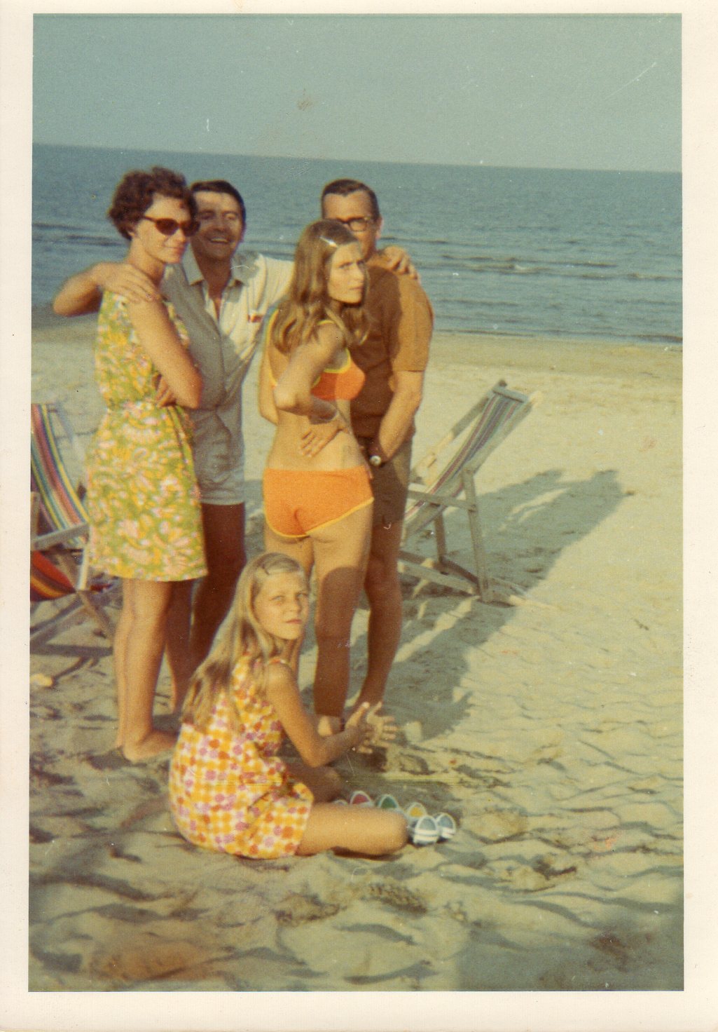 TEDESCHI A POMPOSA: Ursula (in basso) e in piedi (da sx a dx) sua madre, Brian, sua sorella, suo padre – Lido Di Pomposa inizio anni settanta