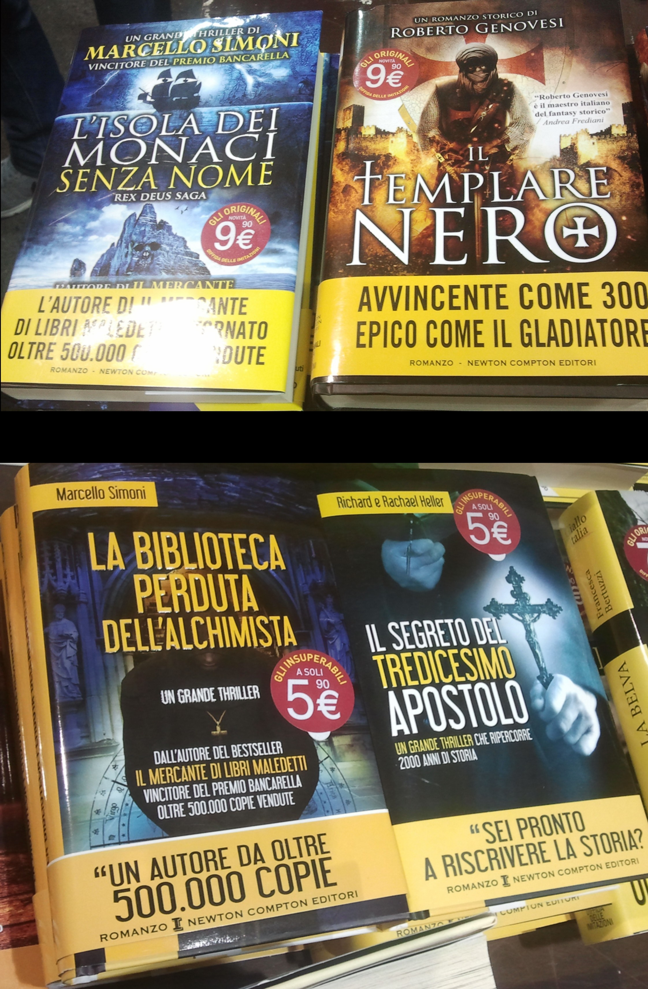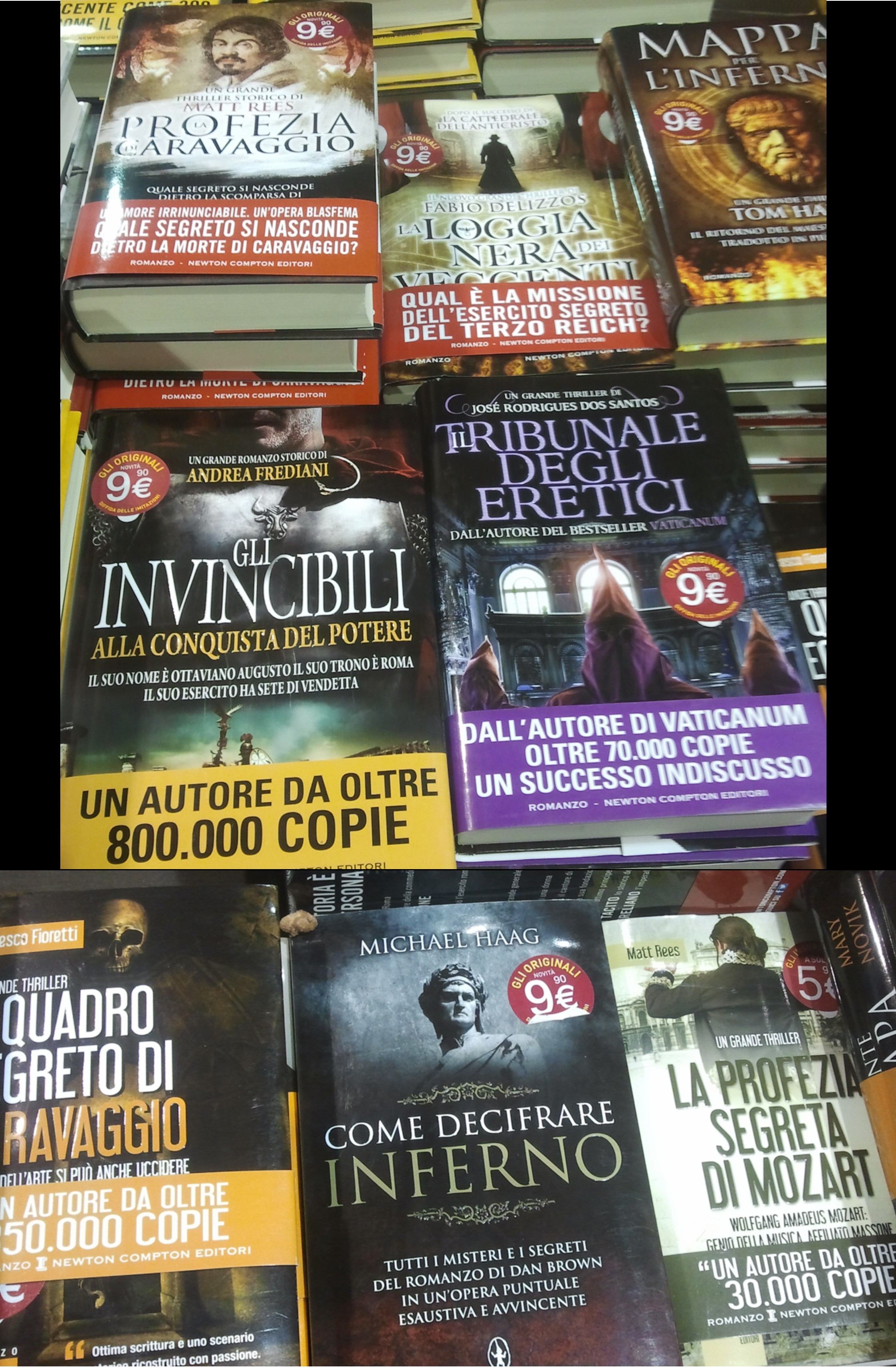 Insieme alla groupie la sera vago per le FESTE DELL’UNITA’ di Regium Lepidi e di Mutina; come sempre finiamo negli stand dedicati alle librerie… notiamo sempre più che gli scaffali sono invasi da un sacco di titoli usciti dopo il successo di gente come DAN BROWN e GLENN COOPER …