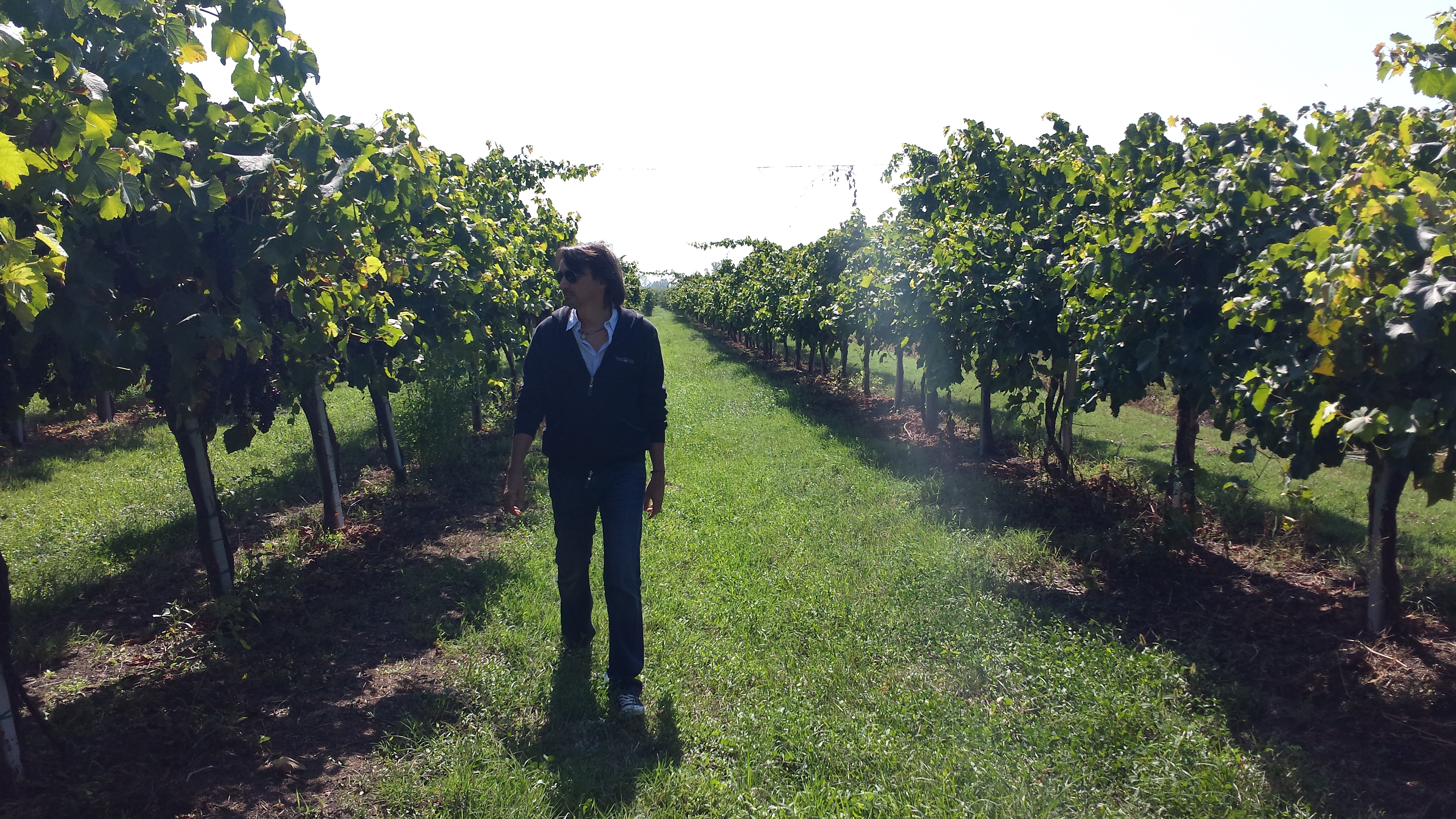 Mattina: lascio il posto in riva al mondo, percorro la stradina “lunga e tortuosa”, mi accorgo che Ronzoni gira per l’aia di casa sua con pantaloni e giacca blu da lavoro, un cappello di paglia in testa, volto lo sguardo e nella vigna di fronte cavagni per terra, un carro, gente che vendemmia: è iniziato quello che Brian chiama “avtunno”, con la vu.