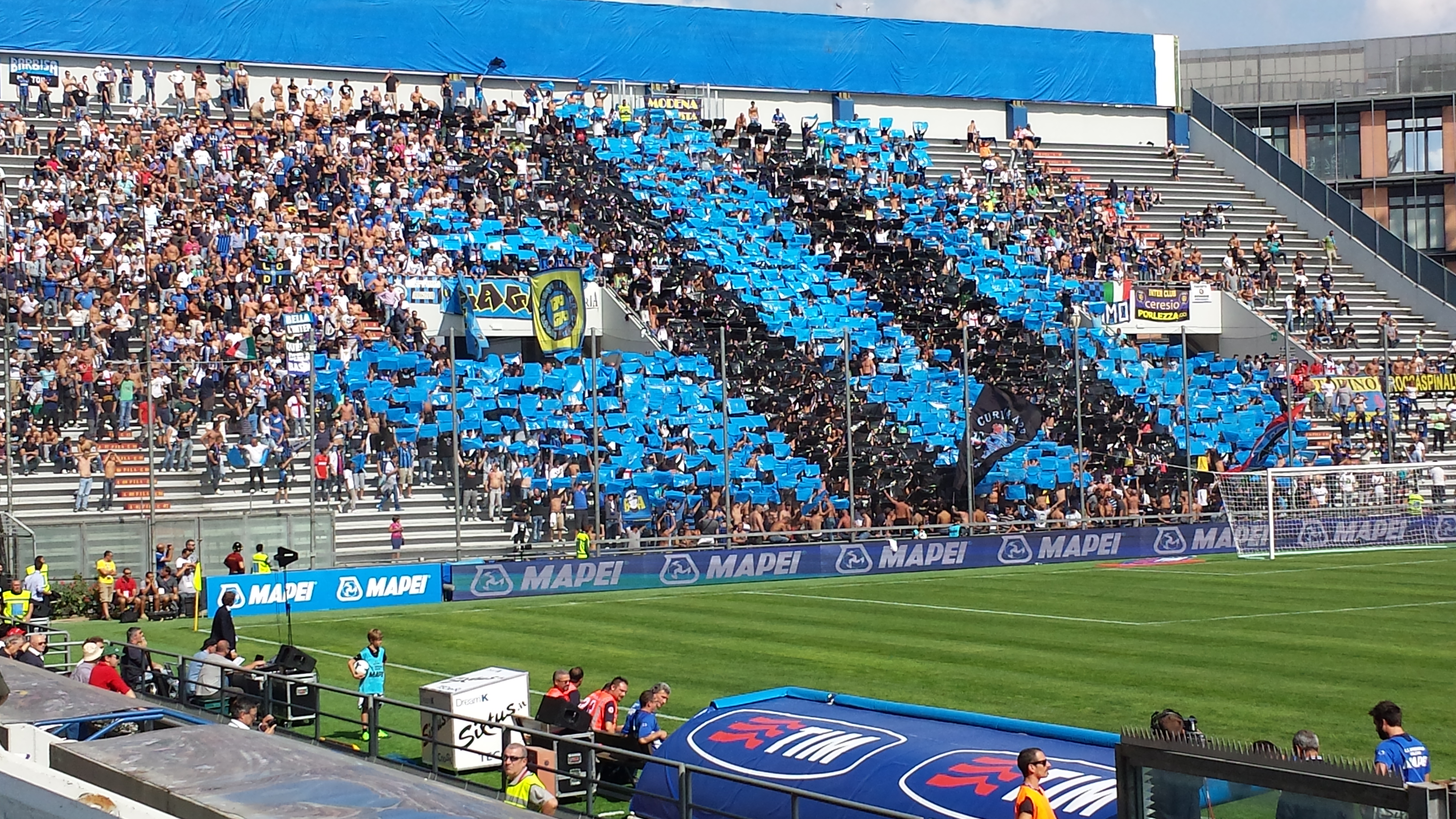 La curva dei tifosi del Sassuolo è meravigliosa, gremita in “ogni ordine di posto”, applaude ed incita i proprio ragazzi. Il coro “chi non salta Carpigiano è” fa tenerezza. La curva dei tifosi dell’INTER invece si vede che è oliata bene in ogni meccanismo (anche nei più meschini). Canta, salta, balla, grida all’unisono…