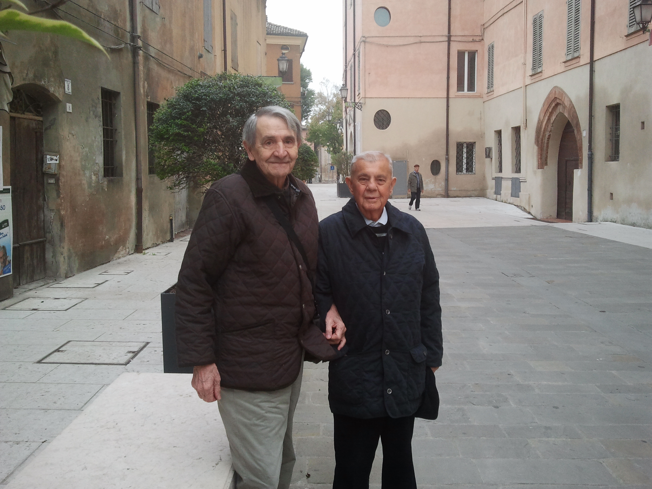 Di nuovo in centro, Brian incontra l’unico amico che ancora riconosce: MARIO SITTI. Mario, che è naturalmente a conoscenza dei problemi di mio padre , cerca di controbattere alle sue domande un po’ fuori luogo con una dolcezza infinita eppur risoluta nella sua emilianità. Lo sa, MARIO, che non saranno ancora tante le volte che si vedranno, così cerca di vivere nel migliore dei modi le ultime passeggiate per Ninentyland col suo vecchio amico. Mentre l’inquadro per la foto, o mentre li vedo camminare nel vialetto che porta alla Rocca, non posso non accorgermi dei commoventi color pastello che l’autunno dipinge intorno a loro…
