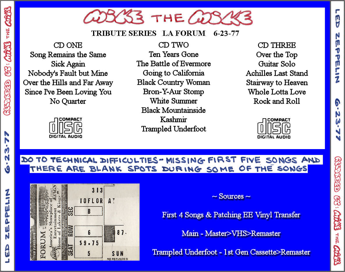 TITLE: Led Zeppelin LA Forum  6-23-1977 – Tribute series Mike The Mike