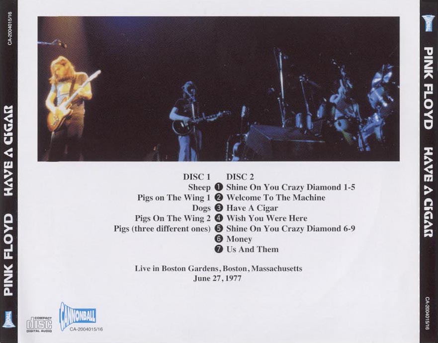 L’ultimo boot che mi sono procurato non è del 77 , ma comunque ha a che vedere con i PF , dato che si tratta di un FANTASTICO soundboard tratto del primo tour solistico di ROGER WATERS (Rosemont Horizon Chicago , 26th July 1984), alla chitarra ERIC CLAPTON ! Curiosa la rivisitazione di alcuni classici floydiani privati della voce&chitarra di Gilmour , e sicuramente superiore l’intera esecuzione dell’ album THE PROS AND CONS.. rispetto alla sua controparte in studio , dal vivo credetemi guadagna parecchi punti . Ovviamente solo per i fan più fetish .