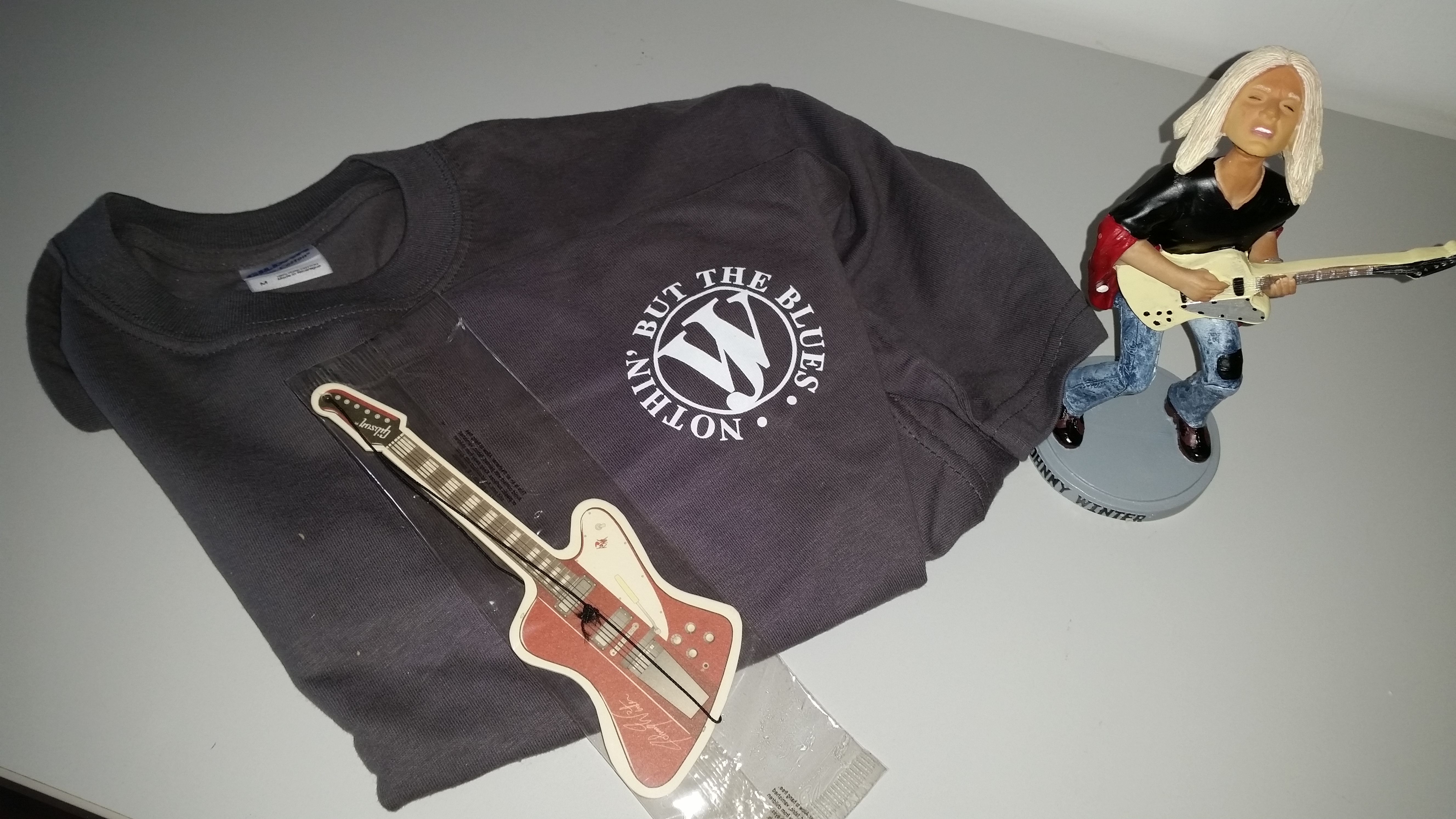La scomparsa di JOHNNY WINTER è stata ed è molto pesante per questo blog. Per la nostra vita è stata una figura determinante, e il sapere che non c’è più ci fa precipitare negli abissi della tristezza. Abbiamo quindi dovuto cercare di sopperire, di trovare qualcosa che ci rimandi ancora a lui per elaborare il lutto. La sagoma di una FIREBIRD, una maglietta e una immaginetta sacra che ci sono appena arrivate aiutano a lenire il dolore. We miss you JOHNNY.