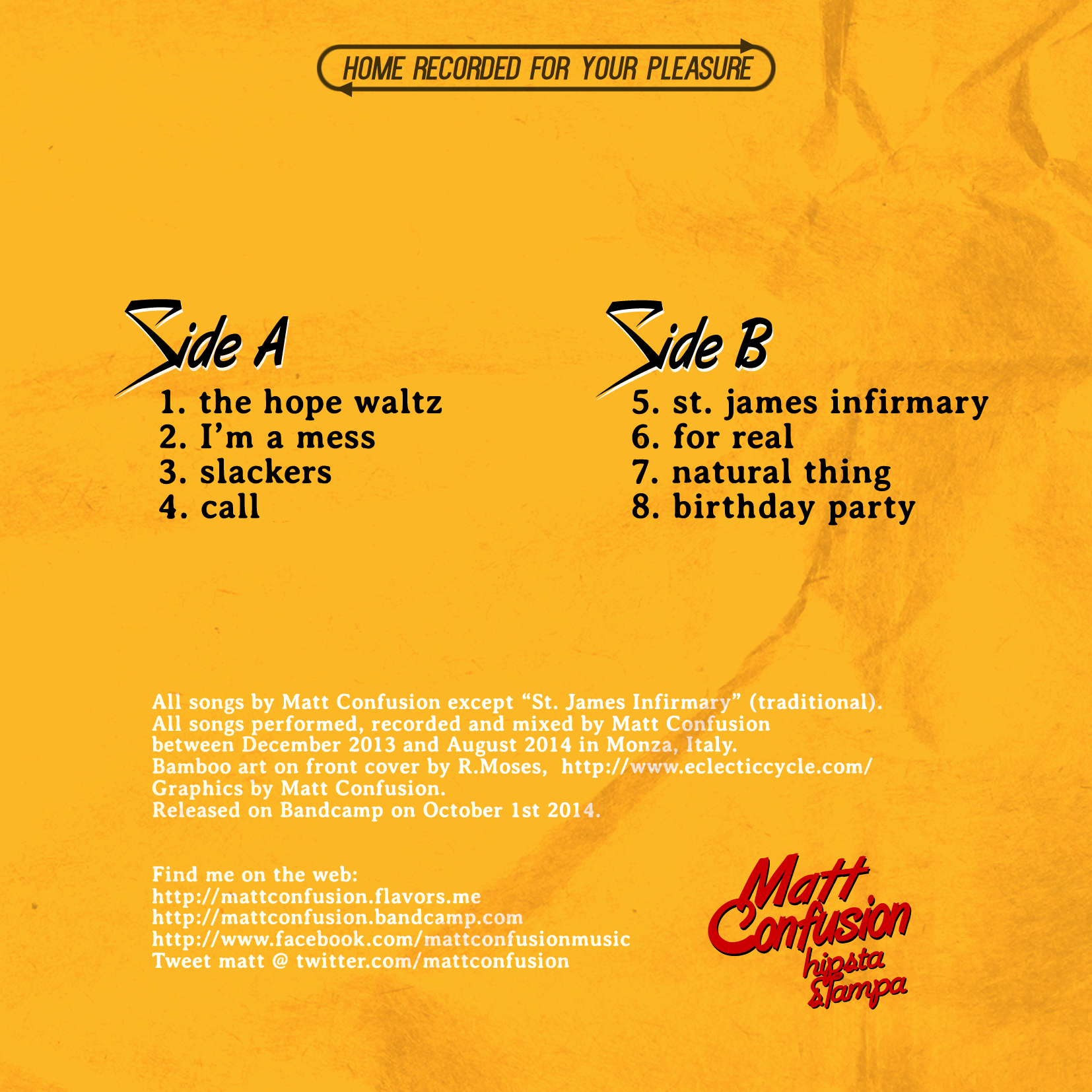 L’album è scaricabile dalla pagina di Bandcamp http://mattconfusion.bandcamp.com
