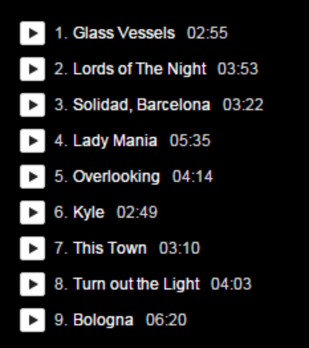 I pezzi che mi sono piaciuti di più sono LORDS OF THE NIGHT, un bel disegno di chitarra su una ritmica ostinata, con melodie e sviluppi un po’ sghembi ma efficaci, LADY MANIA che è più riflessiva e OVERLOOKING che è dominata da un malinconico e freddo giro di chitarra che la rende magnetica. Interessante anche SOLIDAD BARCELONA. THIS TOWN è il brano che hanno messo su video. L’inizio si basa su un giro usatissimo nel Rock tradizionale, ma il gruppo lo ridipinge secondo colori più attuali. Niente male davvero questa formula.