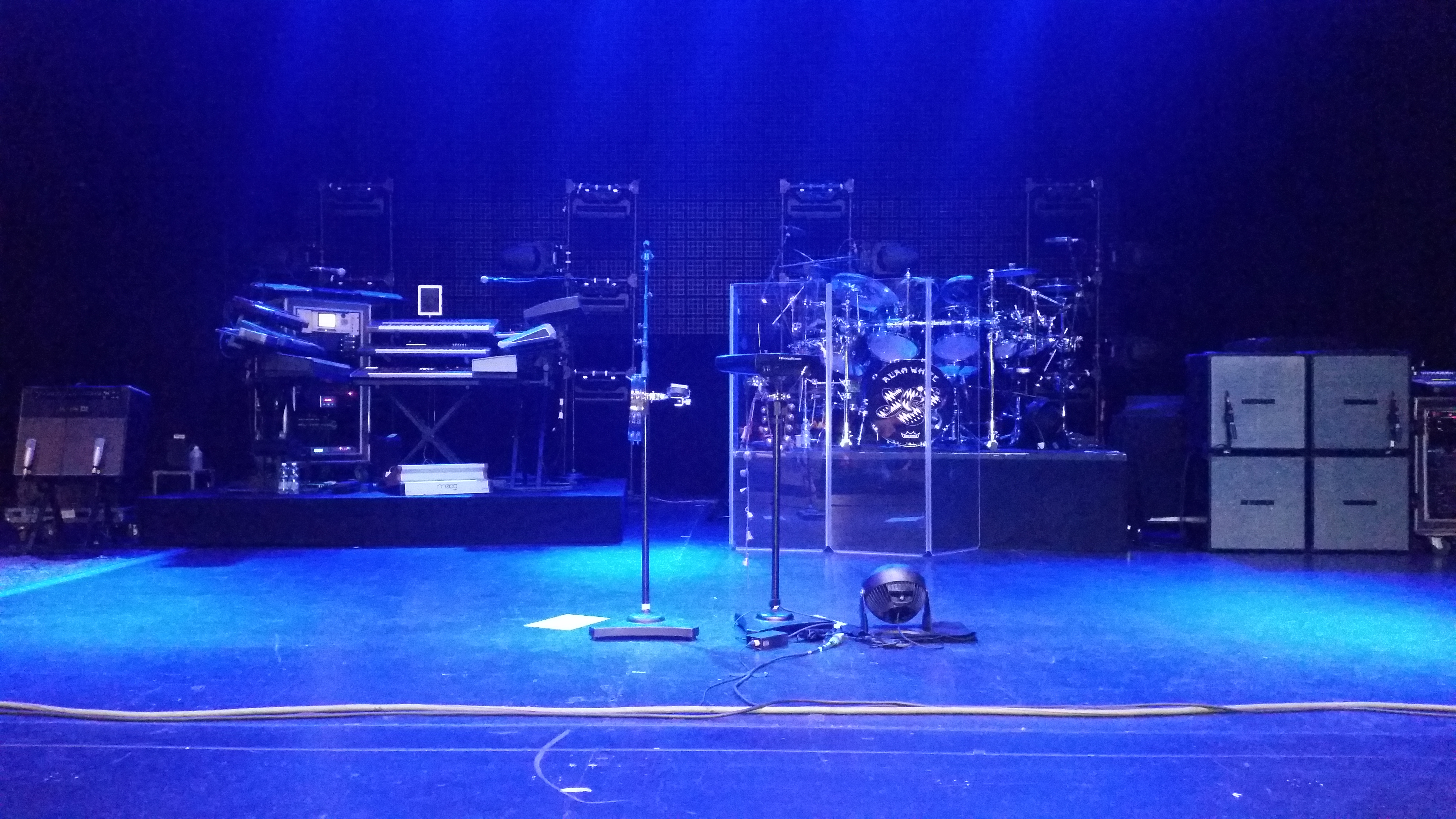 Poi, da quando ha perso il suo compagno di palco di sempre Chris, Alan è invecchiato tantissimo. Sembra proprio che il suo fisico avesse cercato di tenere botta fino all’ultimo e poi ci abbia mollato improvvisamente. Soffre di un visibile mal di schiena che lo riduce a zoppicare quando si alza dalla batteria dopo due ore e venti di concerto, e in più si vede molto bene che Sherwood parecchie volte lo deve guidare, gli deve dare attacchi e stacchi (ma questo succedeva anche con Chris, quindi non mi preoccupo più di tanto). Alla fine a Milano è stato comunque piacevole ascoltarlo e non ha fatto particolari strafalcioni, mi ha stupito molto di più Steve Howe in Tempus Fugit e Siberian Khatru, in cui tirava talmente indietro che veniva voglia di salire sul palco e spingerlo.
