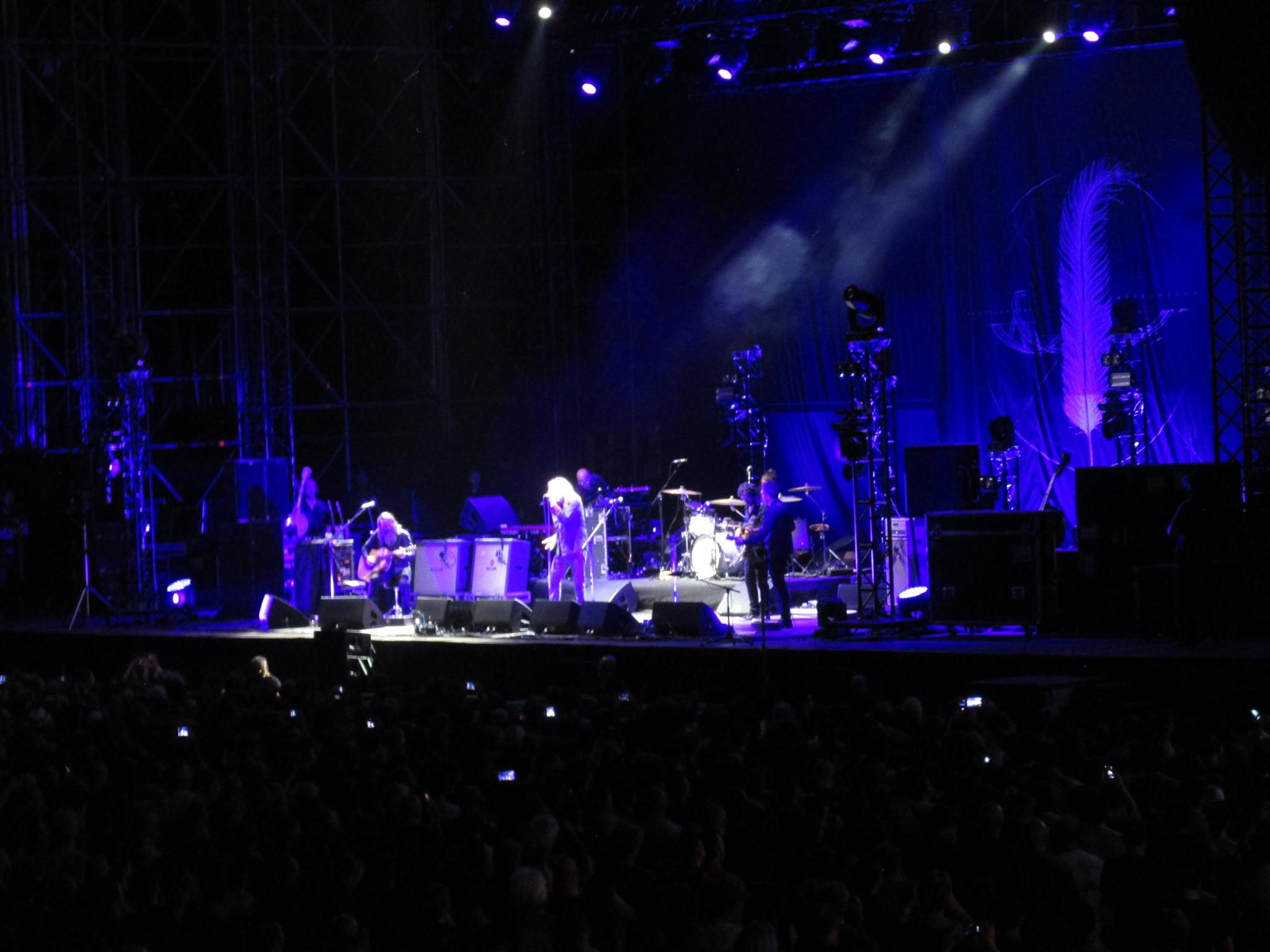 E’ in gran forma, 68 anni portati bene. Apre con POOR HOWARD, dall’ultimo album. Ad arricchire la band anche un musicista africano. Mi piace quello che sento ma già con TURN IT UP il mio entusiasmo si placa. La voce non è male ma è chiaro che non è più quella di un tempo. Ormai Robert canta in tonalità adatte ad un uomo di 68 anni. BLACK DOG è abbassata di un tono, il gruppo la suona dunque in sol. Versione che non mi ha mai convinto. Ma Robert ormai è così, veleggia in un mare di afro-rock condito da oscuri riferimenti country blues trattati con le spezie della world music.