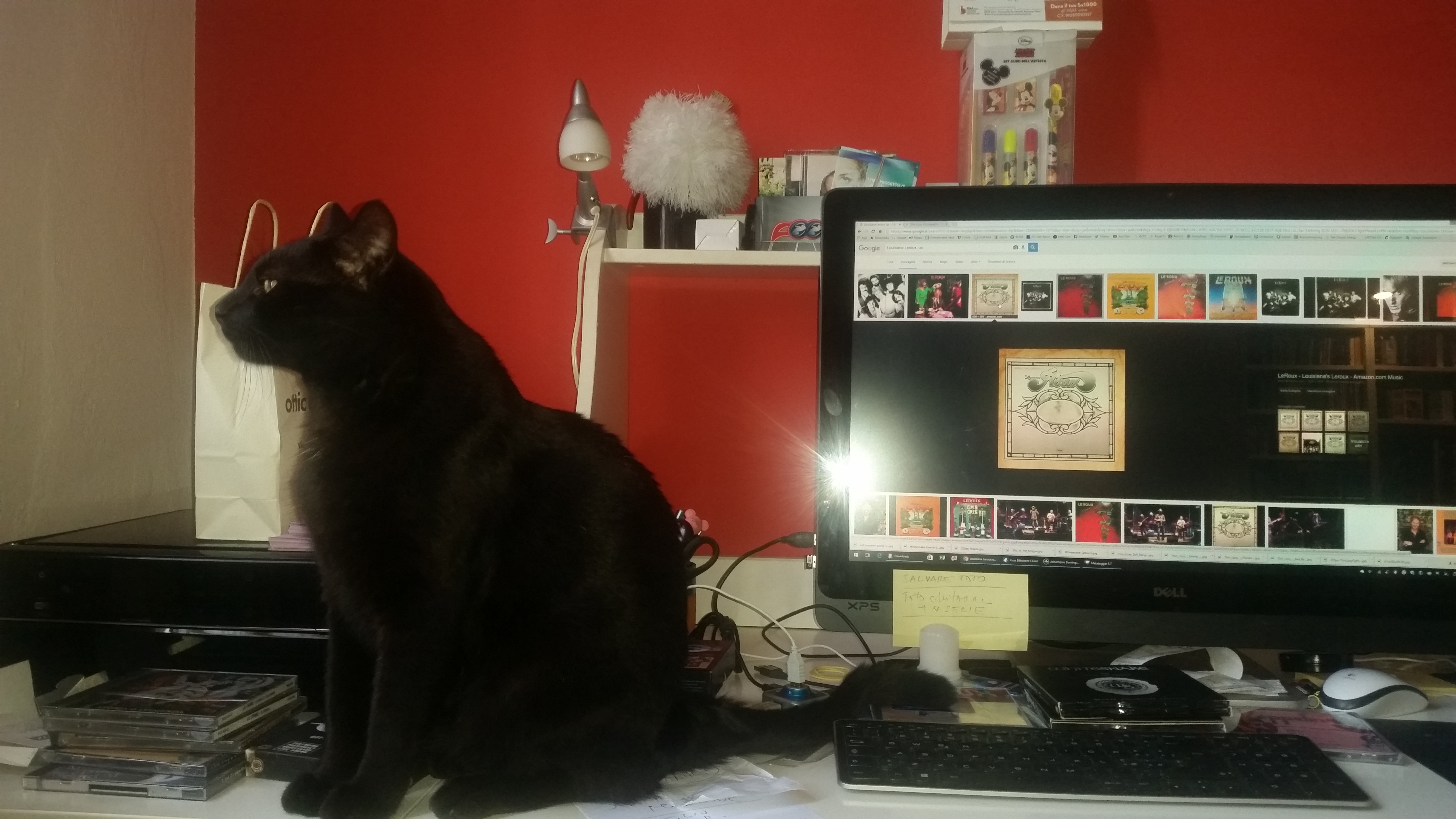 In questi giorni solitari prendo in mano la o il LES PAUL e cerco di carpire qualche segreto di PRESENCE. Non riesco a stare sulla chitarra più di mezz’ora (soffro della sindrome di Jimmy Page), così mi metto a riempire ulteriormente le quattro chiavette da 64GB l’una da tenere in macchina. Palmiro mi viene a cercare, in certo momenti proprio non riesce a fare a meno di me. Strofino il muso sul suo, gli canto una canzone degli ASIA e il diavolo nero della Tasmania reggiana si calma.