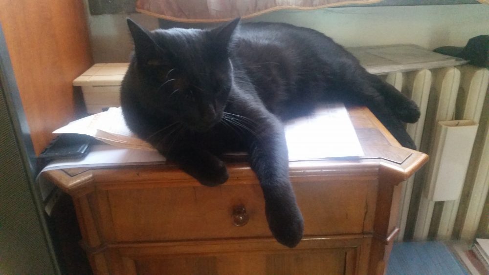 La sera a casa di nuovo senza groupie, è in giro a suonare con chissà chi, spaesato gironzolo per per le poche stanze della hoodoo cabinet dove vivo. Un puntata di LOST, un po’ sulla LES PAUL attaccata al Marshall, un po’ di ripulisti tra i bootleg che ho, ma c’è Palmiro che è in a sentimental mood, devo dedicarmi al mio amico peloso…sfrega il suo muso sul mio, fa le fusa, mi dà leggère morsicate sul mento e sul naso, sembra volermi abbracciarmi…l’amicizia tra due mammiferi di specie diverse è davvero qualcosa di cosmico. Thank you Palmir, you are my best friend.