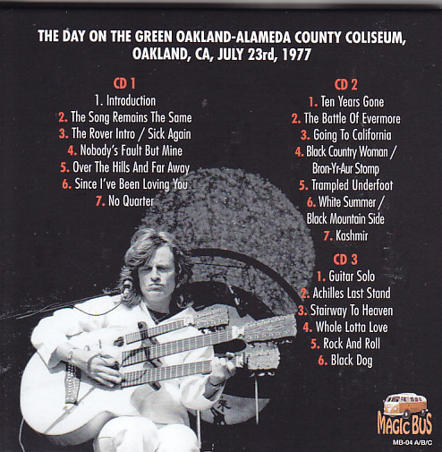 Disc 3 (44:47) Guitar Solo, Achilles Last Stand, Stairway To Heaven, Whole Lotta Love, Rock And Roll, Black Dog