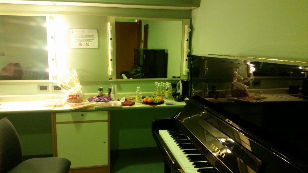 Sono ormai le 21. Qualcuno viene ad avvisare che tra 5 minuti si va in scena. Rick ci saluta “meglio che vada a lavorare adesso!”. Io e Saura prendiamo i nostri posti nel teatro. Ci sono più di 400 persone, il colpo d’occhio non è niente male. Questa è la quarta volta che vedo il suo spettacolo Piano Solo, pensavo di annoiarmi, ed invece me lo godo tutto.