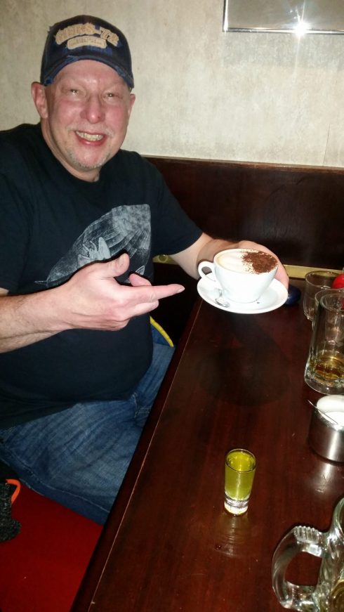 Ad ogni modo il clou della serata è quando Billy, dopo hamburger e birra, chiede un cappuccino. Billy scherzando si scusa, sa che per un italiano è inconcepibile, io rido e gli scatto una foto, e mentre lo faccio penso che i Romani non hanno avuti tutti i torti nel costruire il vallo di Adriano…