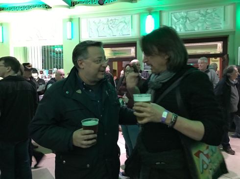 Talking guitar blues – Tim & Trevor Rabin – after show party – Hammy odeon 19/3/2017 – Photo Saura T