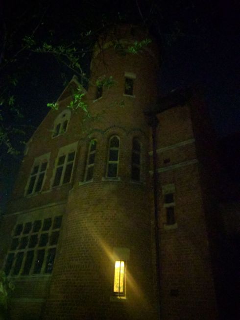 Decidiamo di salutarci davanti alla TH. Di notte è ancora più inquietante.
