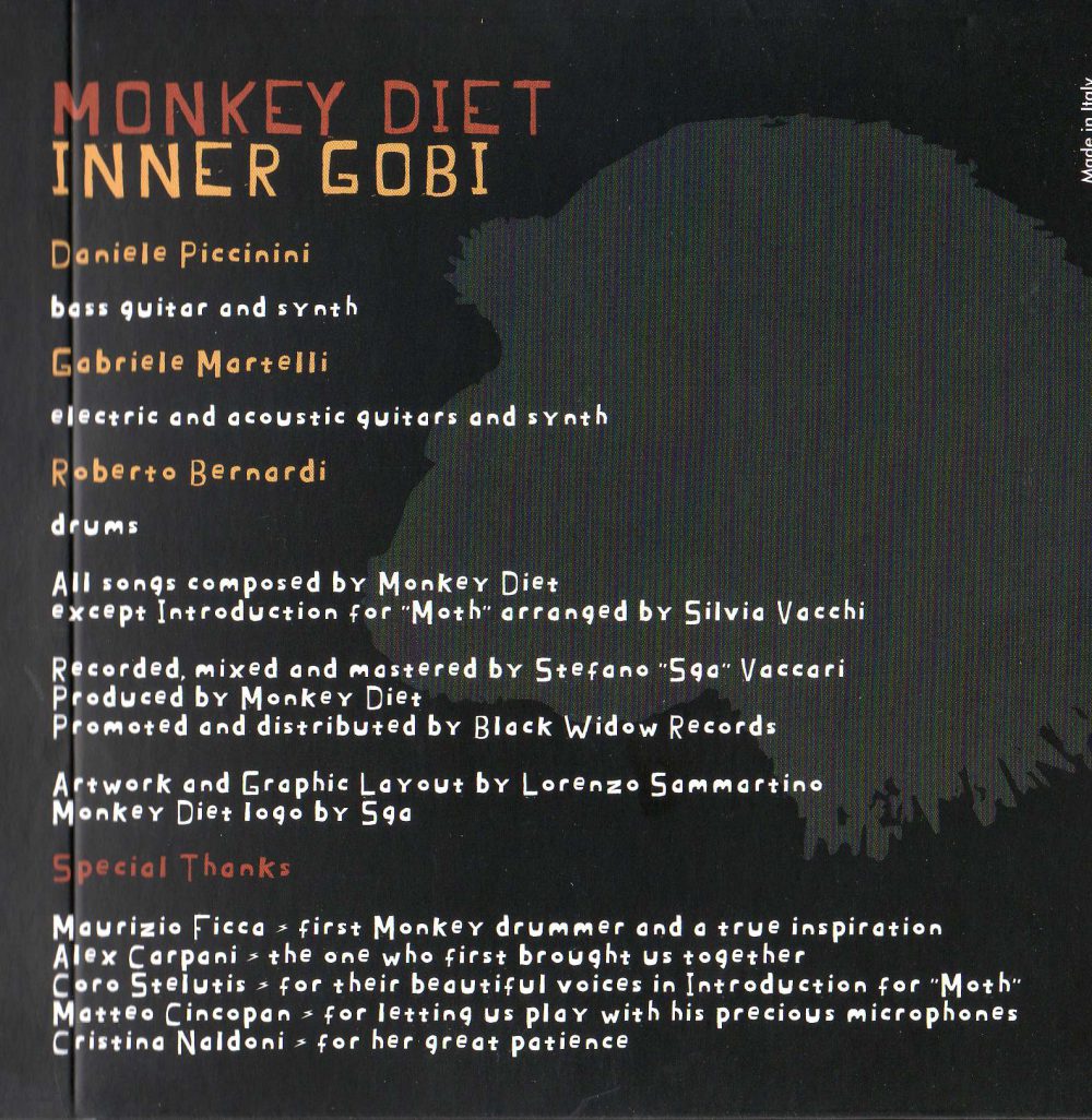 MONKEY DIET, gruppo di Bologna alle prese con un primo album distribuito dalla Black Widow Records. Musicisti provenienti da diverse esperienze precedenti pronti a fari a pezzi la musica e a ricomporla. L’album è un atto di coraggio, musica strumentale e sperimentale che flirta con l’heavy rock. E’ chiaro che l’approccio alla King Crimson è fonte di ispirazione, ma i tre musicisti riescono a tracciare un percorso personale.