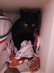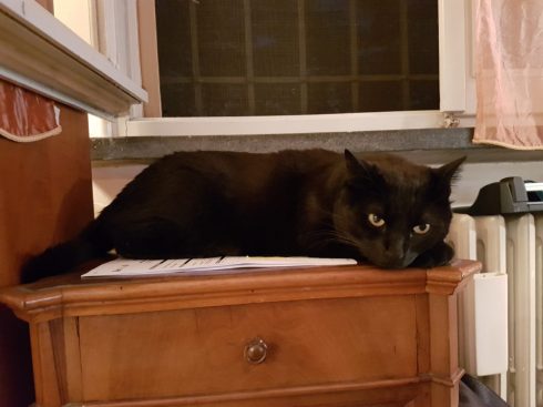 Ci sono giorni in cui Palmiro, il gatto nero che vive con me, è noioso, hai in suoi blues insomma; anche dopo aver scorrazzato per la campagna, aver mangiato i suoi bocconcini preferiti, aver capitolato di fronte ad un abbiocco serale ristoratore, lo vedo vagare per casa senza pace, una cotoletta di pelo alla ricerca di quel che non sa nemmeno lei. Tenta un approccio con i suoi umani preferiti ma poi cambia repentinamente idea, si sdraia per terra ma poi si rialza, mi fissa ma poi distoglie lo sguardo … credo siano quei momenti in cui si rende conto di essere un gatto ma vorrebbe essere (suo malgrado) un umano, ed essere intrattenuto che so da un disco, da un film, da una partita della squadra del cuore (l’Inter of course), insomma da uno di quegli stratagemmi inventati dagli umani per sfuggire dall’angoscia data dall’inspiegabile mistero della vita. Non essendo possibile (o meglio non ritenendo io possibile la cosa, magari lui è più avanti di me) lo osservo mentre va a sfogarsi come può: facendo cadere i miei cd dagli scaffali, facendo cadere i libri posti sui comodini in camera da letto o stracciando ogni borsina di carta che trova in giro. Palmir the Destroyer.