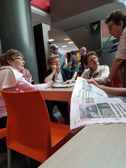 Poso l’attenzione su di un gruppo di donne sedute nel tavolo vicino al nostro. Sono in quella fascia di età che va tra i 65 e i 75. Le sento parlare, non sono lì per fare la spesa, ma per incontrasi e bere un caffè insieme. Vista la vicinanza non posso fare a meno di ascoltare i loro discorsi: una che dice ad una altra che ha visto sua nuora e l’ha trovata in ottima forma, un’altra che commenta un fatto di cronaca riportato sulla Gazzetta di Regium Lepidi, la terza che cerca di organizzare una serata al cinema.