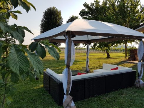 Ci trasferiamo quindi come di consueto alla Domus Saurea per l’inaugurazione ufficiale della veranda estiva. Già quest’anno io e Saura abbiamo deciso di prendere un bersò e un divanetto per goderci il fresco quando cadono le prime ombre della sera.