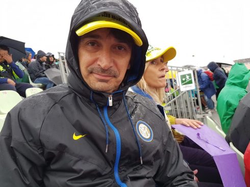Un giovane uomo passa vicino alla nostra postazione, mi guarda, mi lancia un’espressione di gaudio, chiedo spiegazioni, indica lo stemma dell’Inter che ho sul petto ed esclama “Giubbino meraviglioso”. Gli mando un bacio con la mano, lui mi sorride virilmente, alza l’avambraccio, lo muove stringendo il pugno e mi saluta. La fratellanza nerazzurra mi rinfranca l’animo.