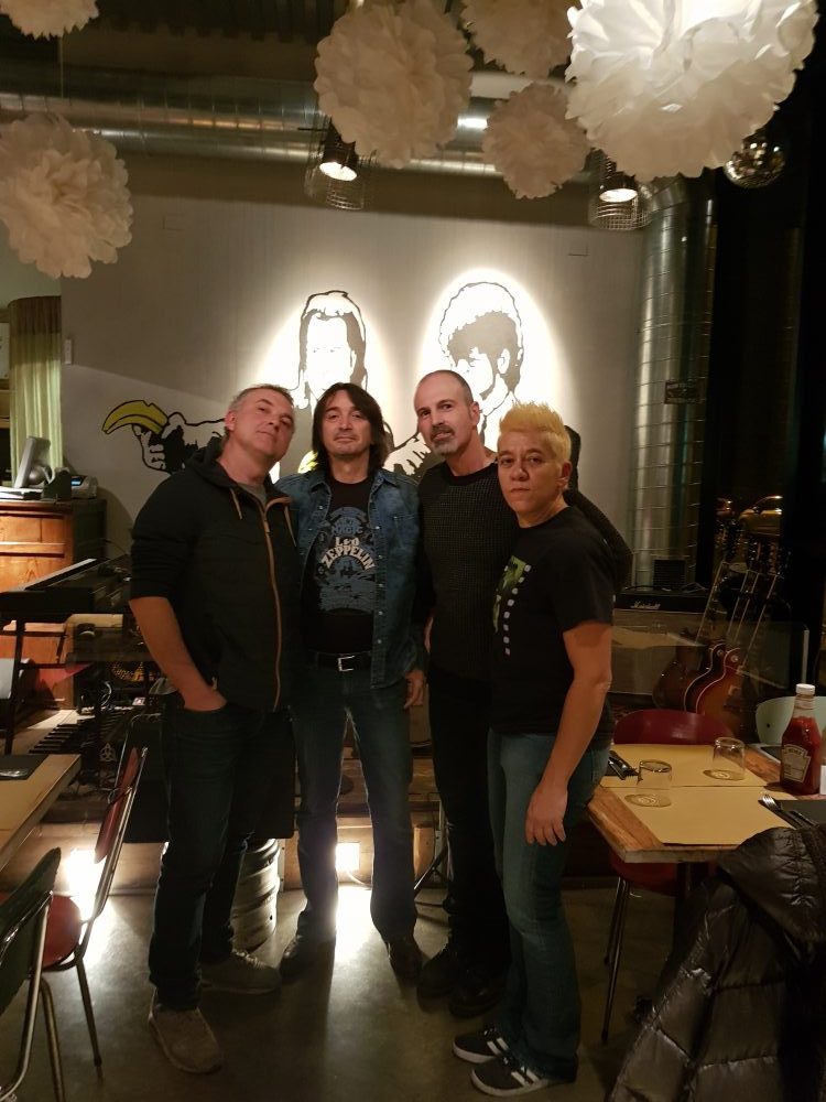 Saura, che è vegetariana, mangia verdure grigliate e patate, mentre noi tre ci diamo alle specialità tipiche di questa bella hambugheria. Mi bevo in tranquillità una buona birra belga bianca mentre vago con i miei pensieri. Per noi essere qui alla Bottega è un po’ come per i LZ essere al Forum di LA. E’ ormai il quarto concerto che facciamo qui, la sala è sempre piena, l’entusiasmo del pubblico sempre concreto, le vibrazioni sempre ottime. Con Valerio, il titolare, ci siamo sempre trovati bene, e anche stasera il feeling è evidente.