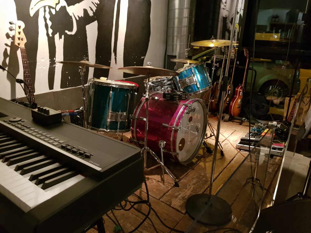 L’arrivo a Mountcabbage (Montecavolo insomma) è sempre inquietante, sulla sinistra c’è una azienda che ha una grande statua di padre pio di fianco all’entrata. I throw a madonna as usual. Scarichiamo l’armamentario, nel frattempo arrivano Lele e Pol, prepariamo la strumentazione sul palco, poi è già tempo poi di soundcheck e della cena.