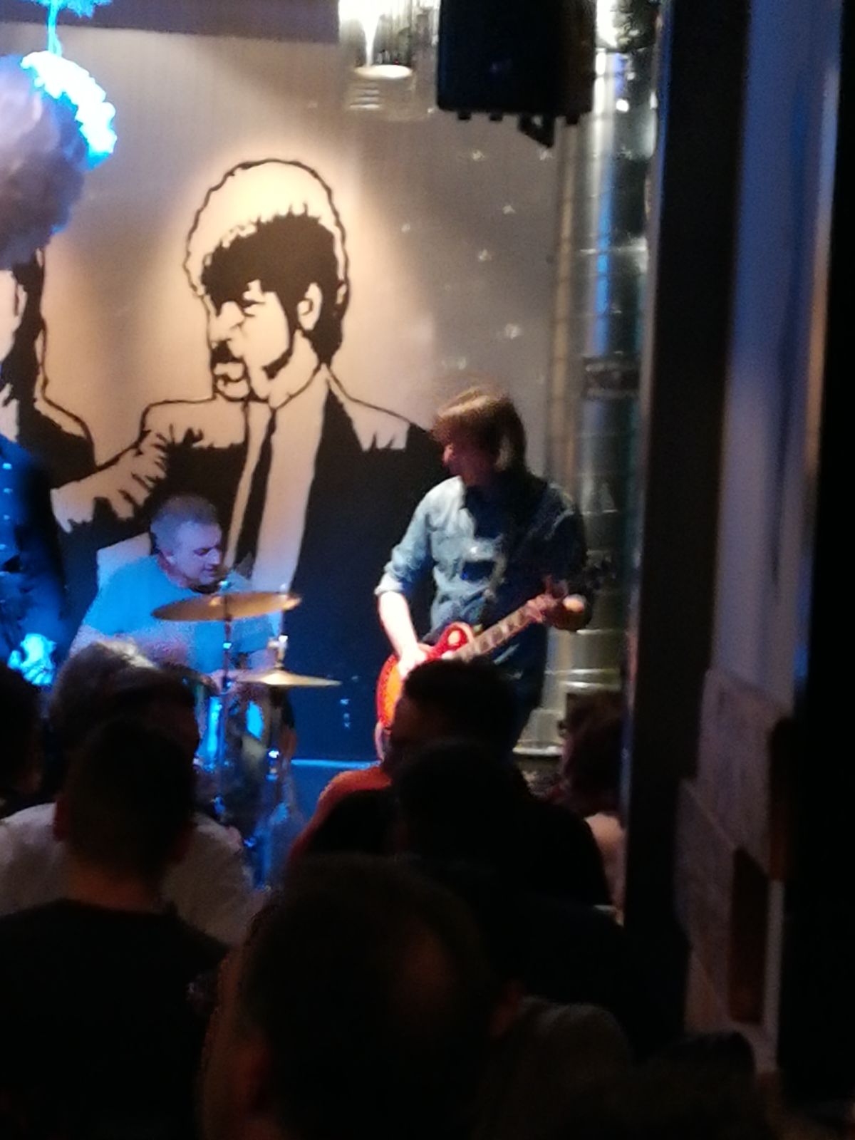 Non mi sento particolarmente brillante stasera, mi sono preparato a dovere, ho la mano sciolta e calda – limitatamente al mio modo di essere chitarrista – mi sono preparato a dovere, ma arranco un po’ sotto i colpi del blues. A fine concerto Riff mi dirà: “ho visto che hai sofferto molto, siamo proprio uomini di blues”.