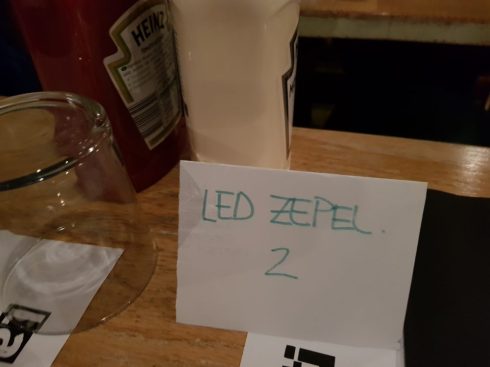 Il mercoledì dopo il nostro concerto alla Bottega dei Briganti torniamo nel locale a cena e per sentire una tribute band degli AC/DC. Il locale è già bello pieno. Abbiamo prenotato, ci indicano il tavolo, malgrado una P sia rimasta per strada, non possiamo confonderci.