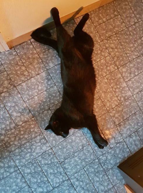 Nei mesi invernali la mia amicizia col gatto Palmiro si fa più intensa, con giornate più corte e fredde il diavoletto nero della Tasmania cerca i suoi umani con più frequenza. Di notte dorme nel lettone con noi, esattamente in mezzo poi, dopo che la sua umana si alza, gli dà da mangiare e infine esce per andare al lavoro, viene da me per una mezz’oretta di amicizia pura. Inizia a fare la pastella e le fusa su di me e poi si sdraia accanto a me infilando il suo muso sotto al mio mento. E’ piacevole nelle fredde e buie mattine invernali ritrovarsi con una sciarpona felina intorno al collo, una cotoletta di pelo nero che con la sua vicinanza ti mette di nuovo a tuo agio in questa porca vita. Sono anni che lo scrivo e lo vivo, l’interazione tra due mammiferi di specie diverse che vivono insieme mi sorprende sempre. Ringrazio il nulla cosmico onnipotente che ci ha messo l’uno nelle zampe dell’altro.