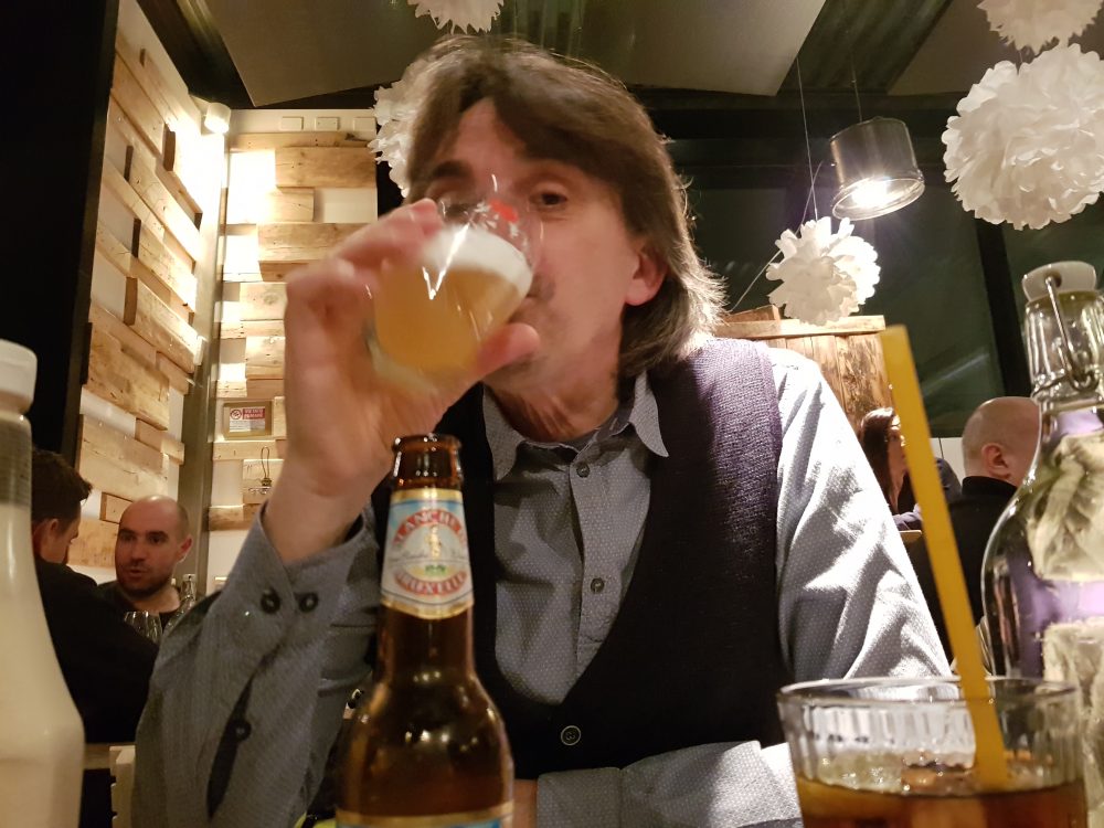Nemmeno il tempo di sederci che una ragazza del tavolo di fianco ci saluta “Ciao, voi siete degli Equinox, vero? La settimana scorsa ero qui a sentirvi”, parlando con i due amici seduti al suo tavolo “Lei è la bassista e tastierista, pensate che mentre suona la tastiera fa anche la parti del basso con la pedaliera basso.” Rimango basito, non è automatico che la gente capisca il meccanismo e la bravura di Saura. Ricordo che un volta un suo amico musicista venne e vederci e a fine concerto non aveva capito che mentre Saura era alle tastiere suonava anche la pedaliera. Siamo dunque entrami sorpresi e le facciamo i complimenti.