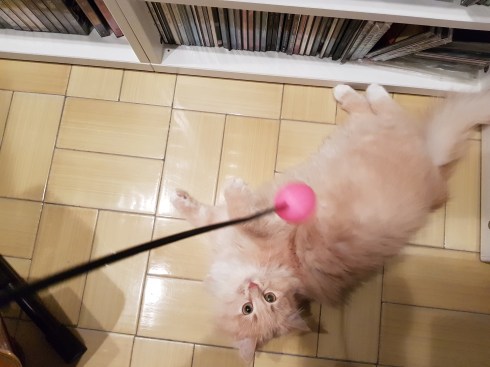 Faccio per uscire, lo Strichetto (la gattina a cui diamo asilo già da qualche mese) reclama un po’ di attenzioni, mostra la pancia, gliela accarezzo poi la faccio giocare con il pupazzo del ragno assassino e con la pallina rosa (e sì, lo so, an s’è mai vest Johnny Winter fer chi lavòr ché!…non si è mai visto Johnny Winter far quei lavori qui.).