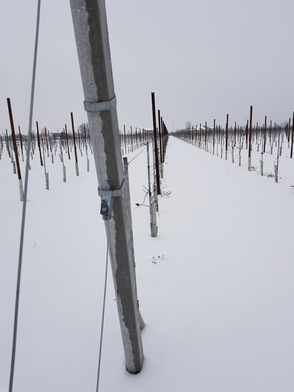 Dintorni della Domus Saurea: giovani viti innevate – foto TT